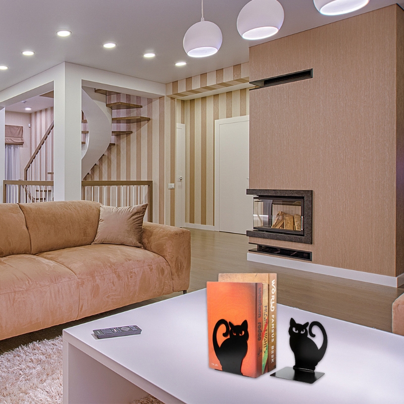 - Unique Hollow Design: This pair of bookends adopt creative art hollow out persian cat outlook design, powder-coated surface is smooth and anti-rust. Suitable for book shelf holder home decorative. Cute and durable, will not add visuad bulk to your shelf or desk. <br/>
