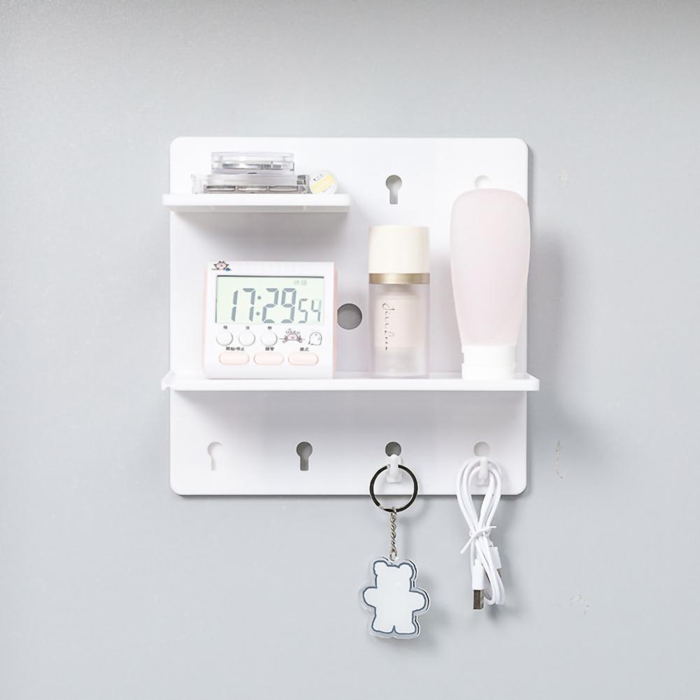 With help of the wall hanging shelf, it helps you to organize and hang various kinds of items, like toys, mini statues, remote control, keys, clocks, perfume, lotions and more, keeping bathroom and bedroom clean all the time.