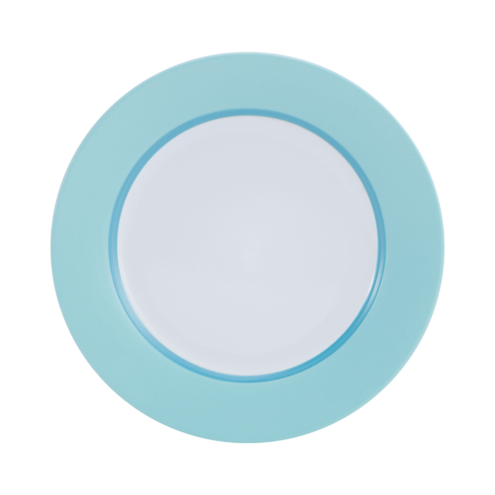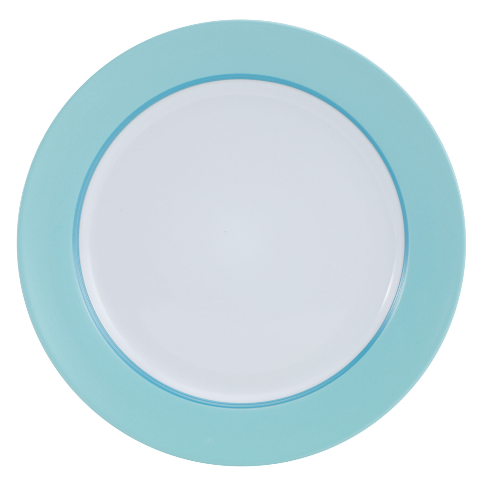 STUNNING FINISH: Simple shapes are escalated to stylish elegance by a white center and a thick solid teal border