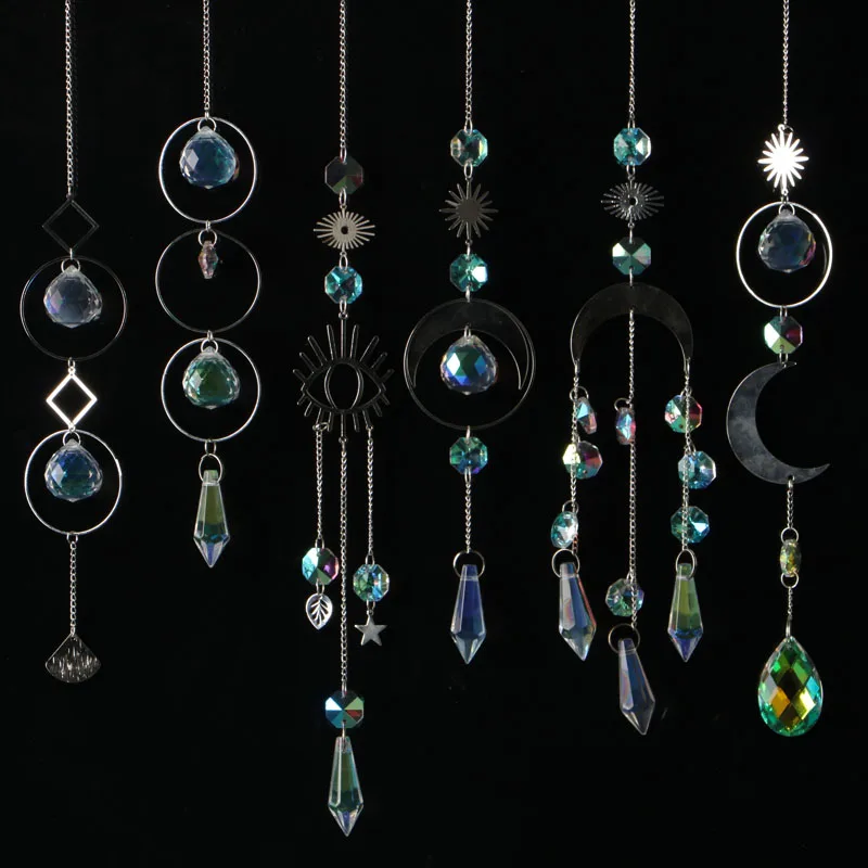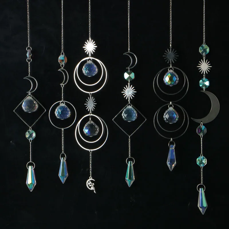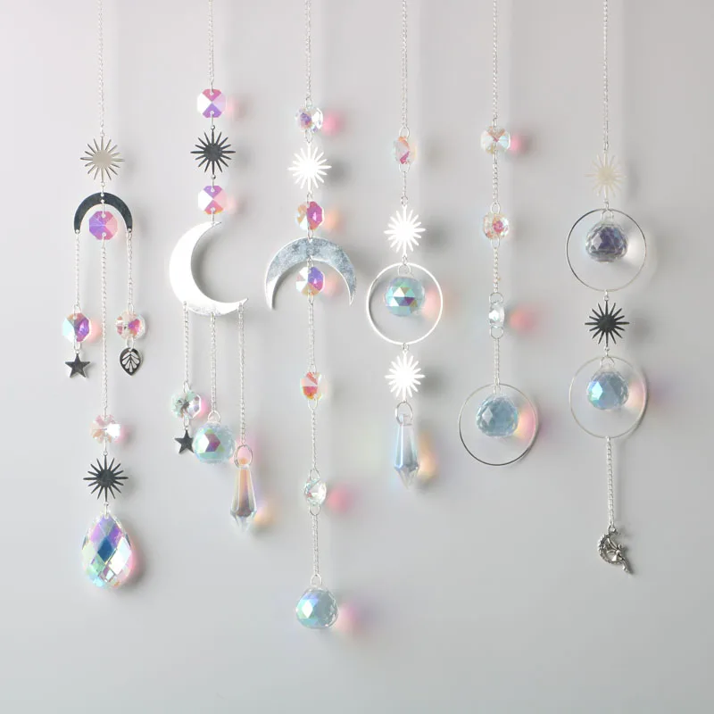 1PC AB Crystal Wind Chimes Moon Suncatcher Hanging
