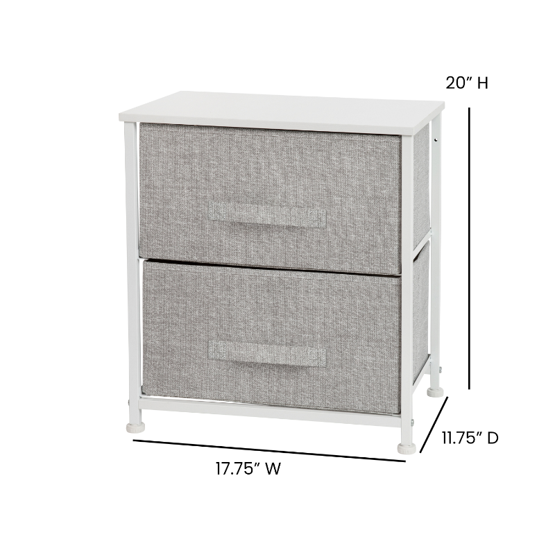 Get much needed storage at an economical price that works anywhere in your living space with this 2 drawer organizer. Whether you need a place to display family photos and hold remote controls, store washcloths, or as toy storage this 2 bin organizer is a perfect solution. Use this 2 drawer storage table as a nightstand to hold your cell phone, glasses, or nighttime glass of water.