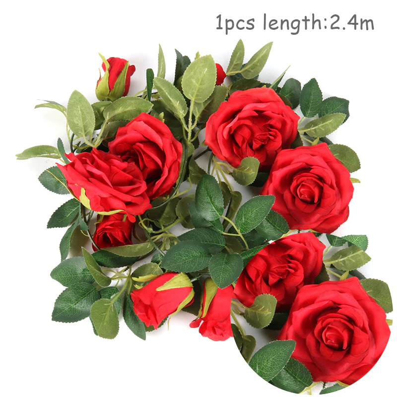 Artificial Flowers Red Rose Ivy Vine is made from high-quality materials, processed with exquisite craftsmanship, featuring a delicate appearance and great durability, perfect for party supplies and home decorations.