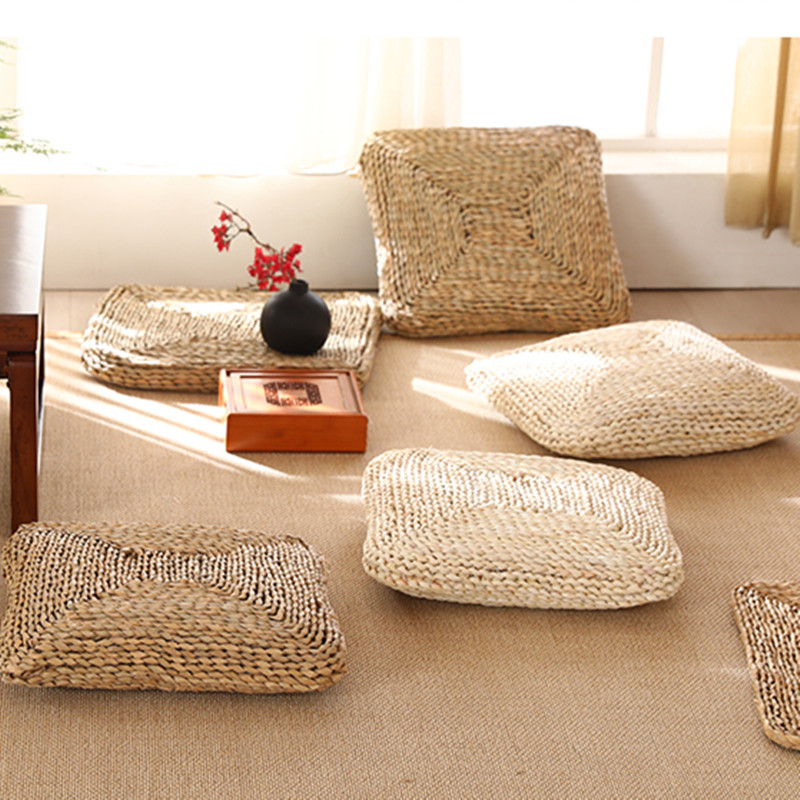 Made of high-quality straw material, it is lightweight and Eco-friendly. The length of this straw cushion is 40cm, the width is 40cm .