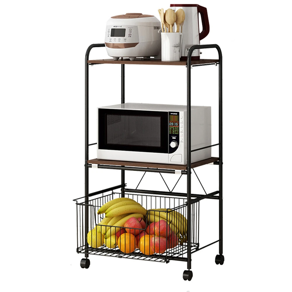 - 3-Tier ample storage: Designed with 2 shelves and a storage basket (total size: 19.7″L x 14.5″W x 43.3″H), the kitchen baker’s rack offers a massive storege space to meet your needs of easy storage. This sturdy shelf can support 66 lbs, so it can hold your microwave oven, toaster, coffee maker and other kitchen appliances easily.The basket can hold vegetables, fruits, seasonings, etc.
