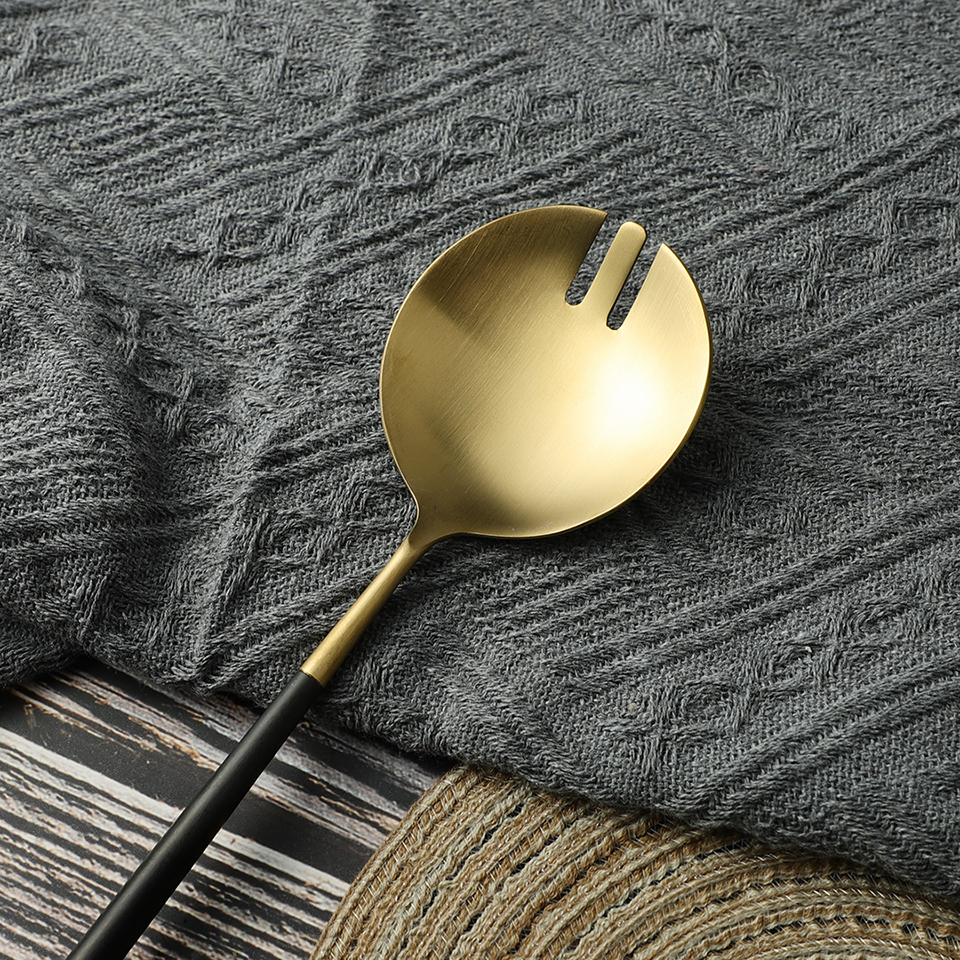 - This set includes a large salad spoon and fork, both made from high-grade 304 stainless steel, ensuring their durability and longevity.