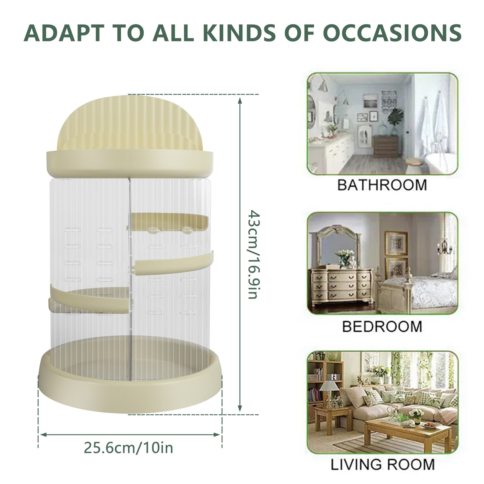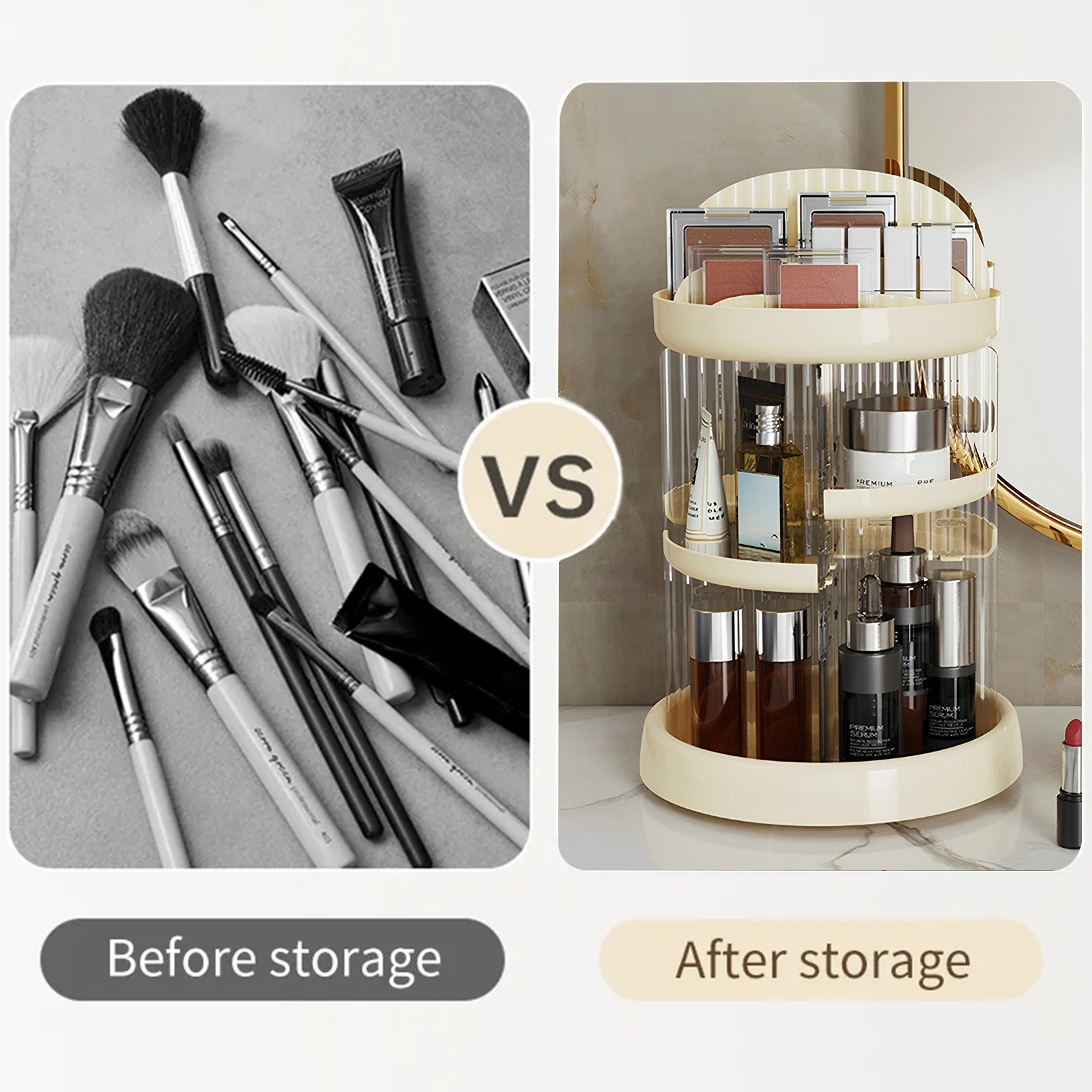 With 360° rotatable design, it is convenient to get the skin care products you need. Ideal for dressers, tables, bathrooms, bedrooms, offices, countertops, cabinets, toilets and kitchens. Keep the space tidy.