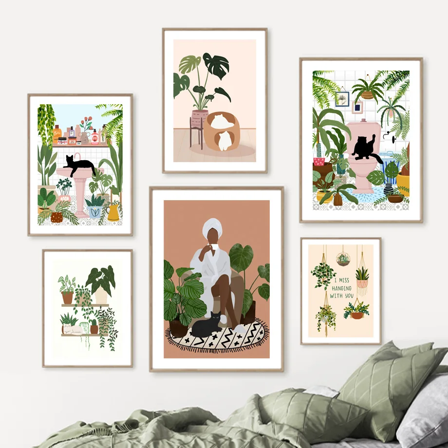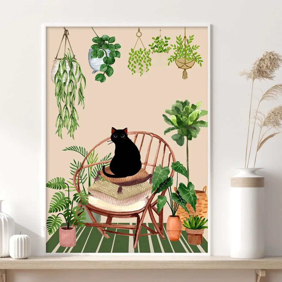 Abstract Green Plants Black Cat Canvas PaintingWall Art Decor (3PCS/Set)