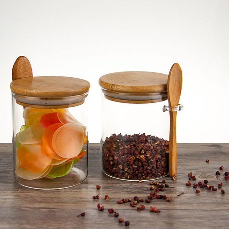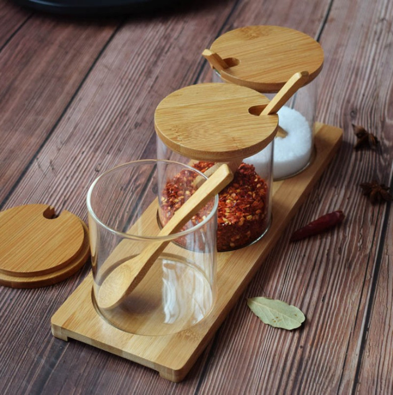 - Kitchen storage jars with 3 pieces pcs set, with wood spoons