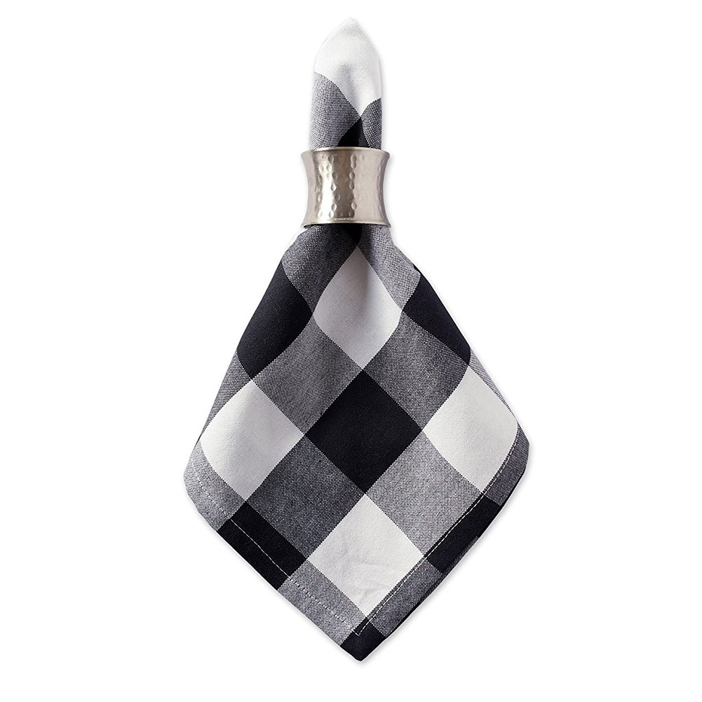 Featuring a classic black and white plaid pattern, these napkins add a touch of sophistication and timeless style to your table decor. The contrasting colors create a visually striking design that can complement various table settings, from casual gatherings to formal occasions.