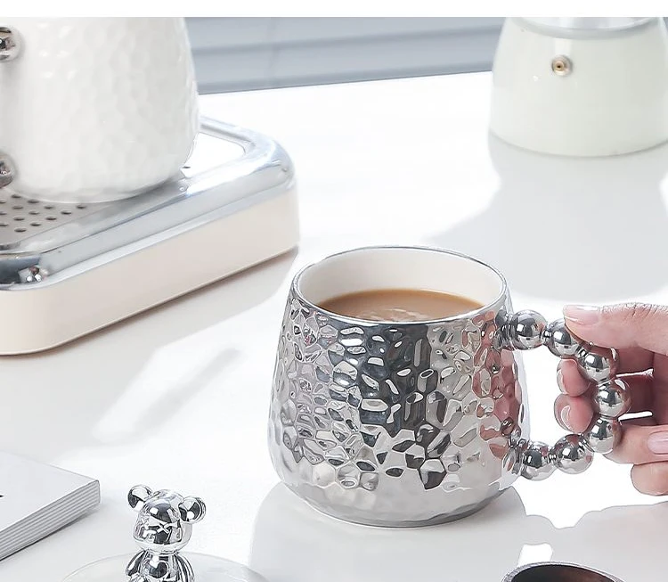 Hammer textured design that reflects light in the light, beaded handle for a comfortable grip, and a stable and sturdy bottom. Suitable for various occasions, such as tea time, tea party, friends gathering, family dinner, cafe, coffee break.