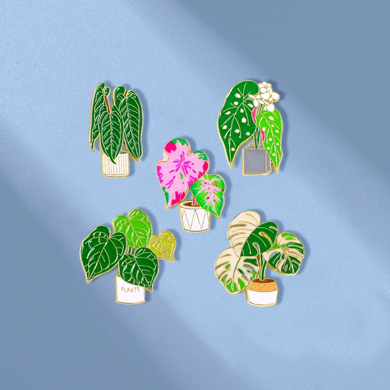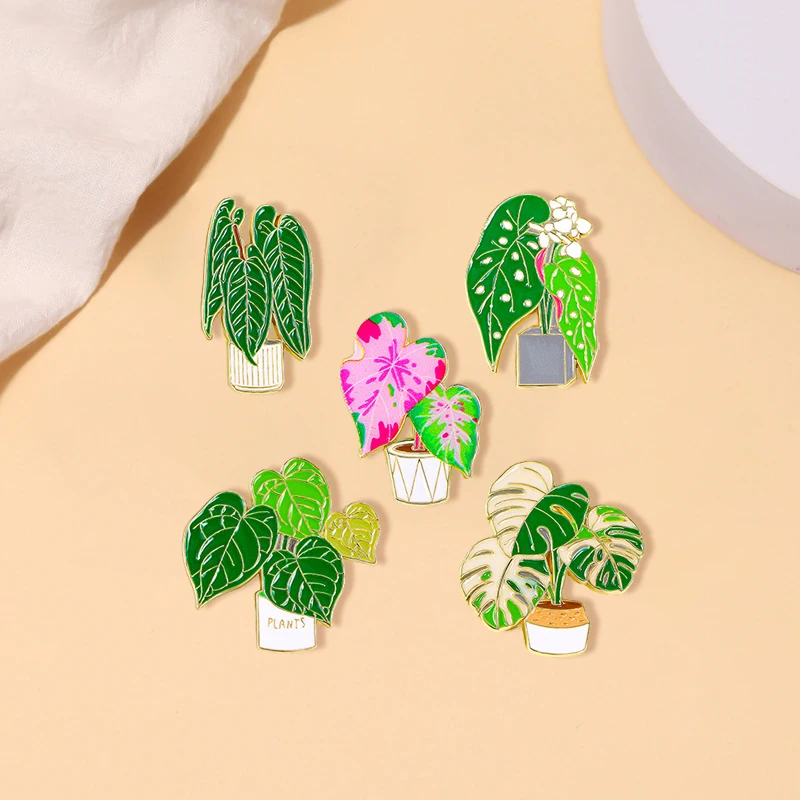 5 Styles Green Plant Lover Charms Eamel Enamel Pins (5PCS/Set)