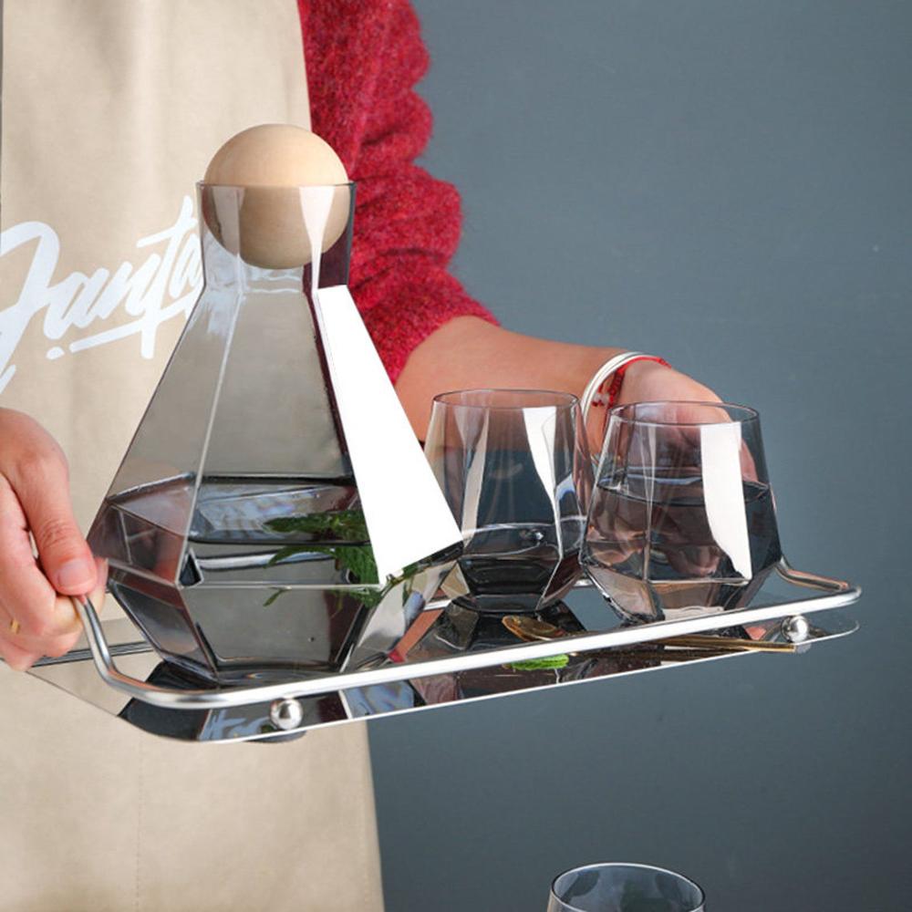 No one can resist the temptation of this gorgeous water set. The unique design integrates fashion elements. The shape of the carafe body is classic and diamond fashion. The association with the perfect spherical ash wood lid illustrates the inspiration of art. The carafe comes with 4 glasses . The glasses have good transparency . All of these elements are a combined concept of Minimalist and fashion.