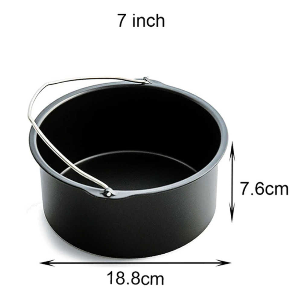 7 inch cake pan: Fit all Airfryer 3.7 4.2 5.3 5.8QT. Durable and convenient for kitchen use