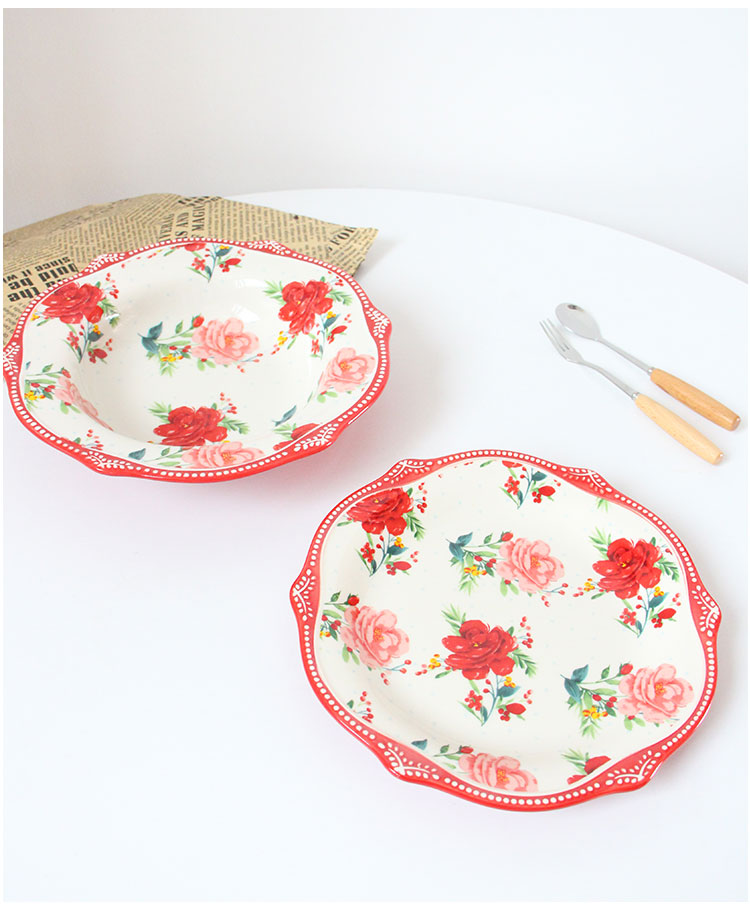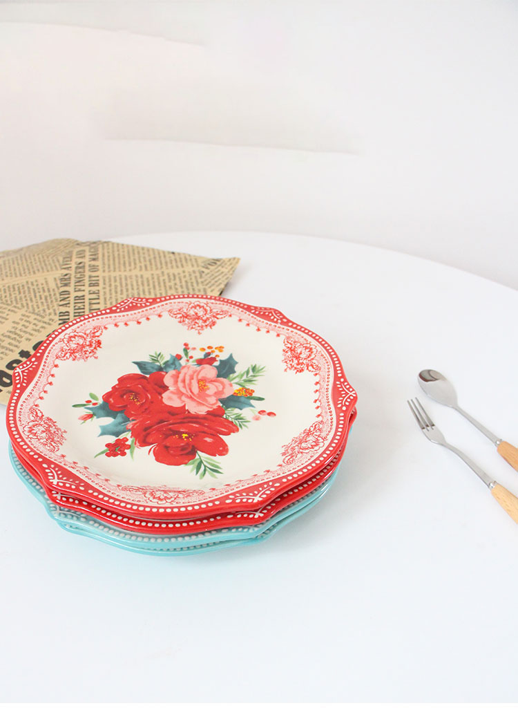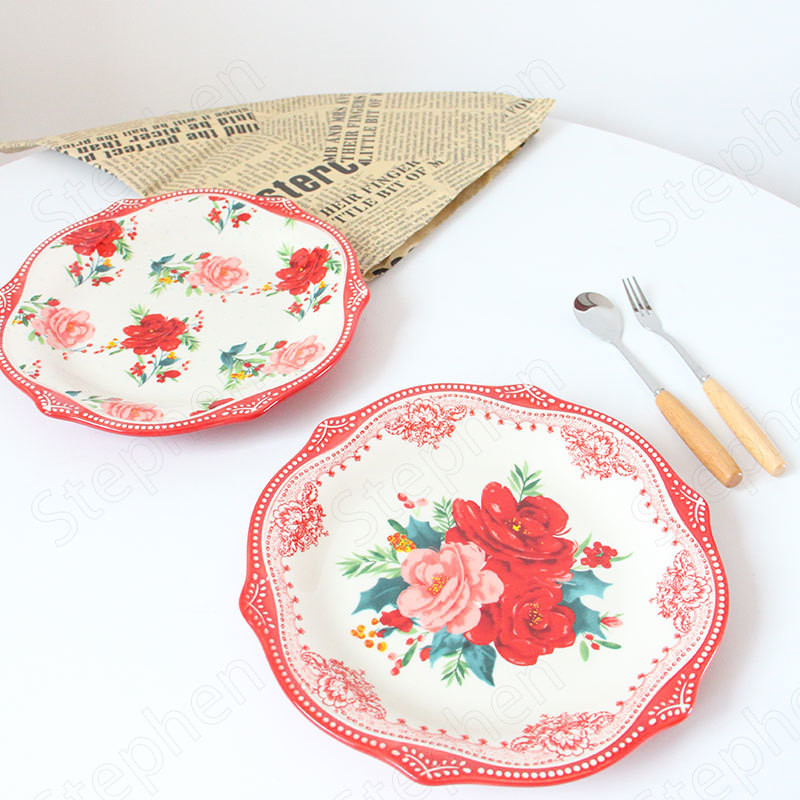 Thick Enamel Plate Classic Printed Dish Cold 22cm Large Dinner Plate