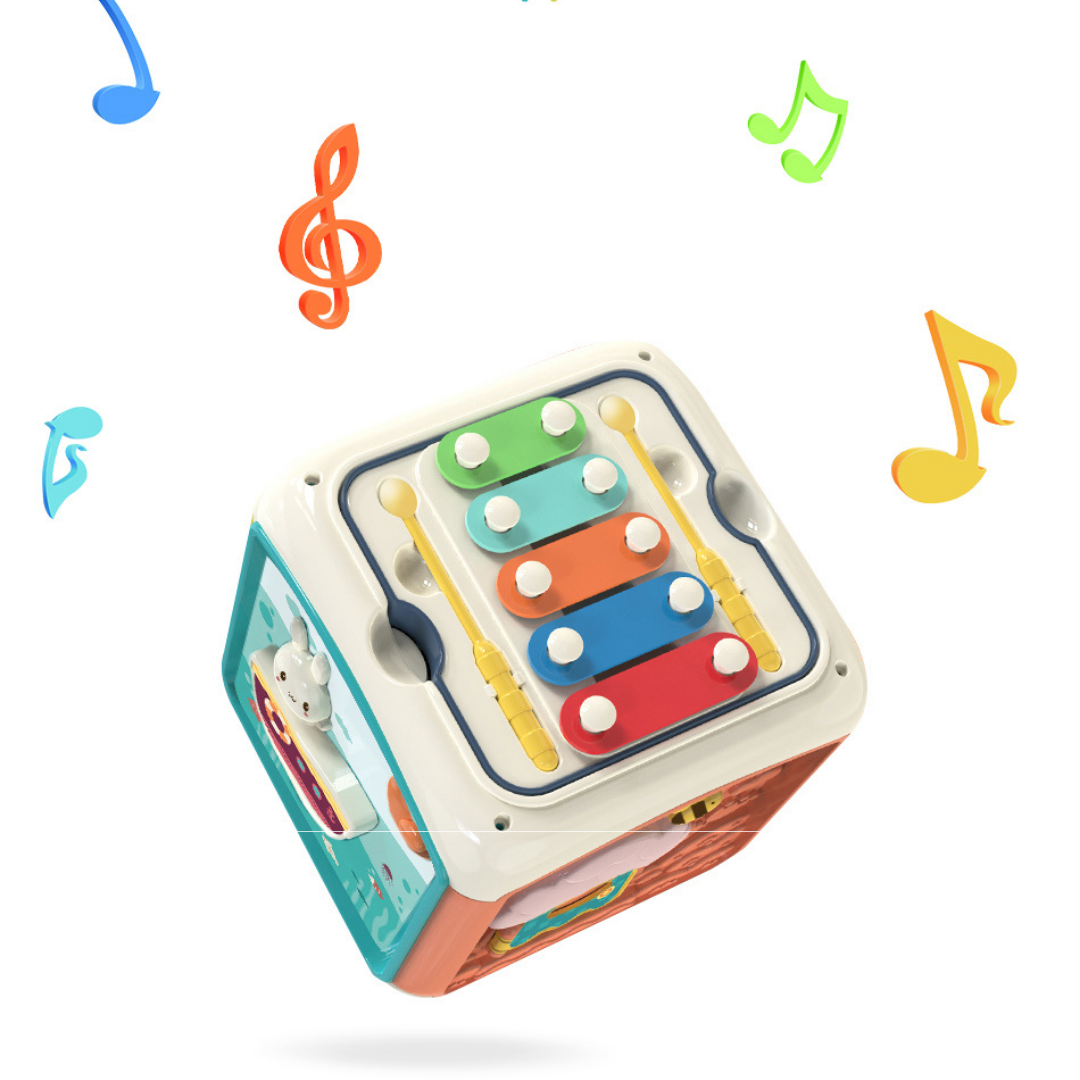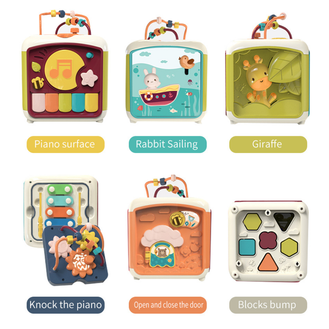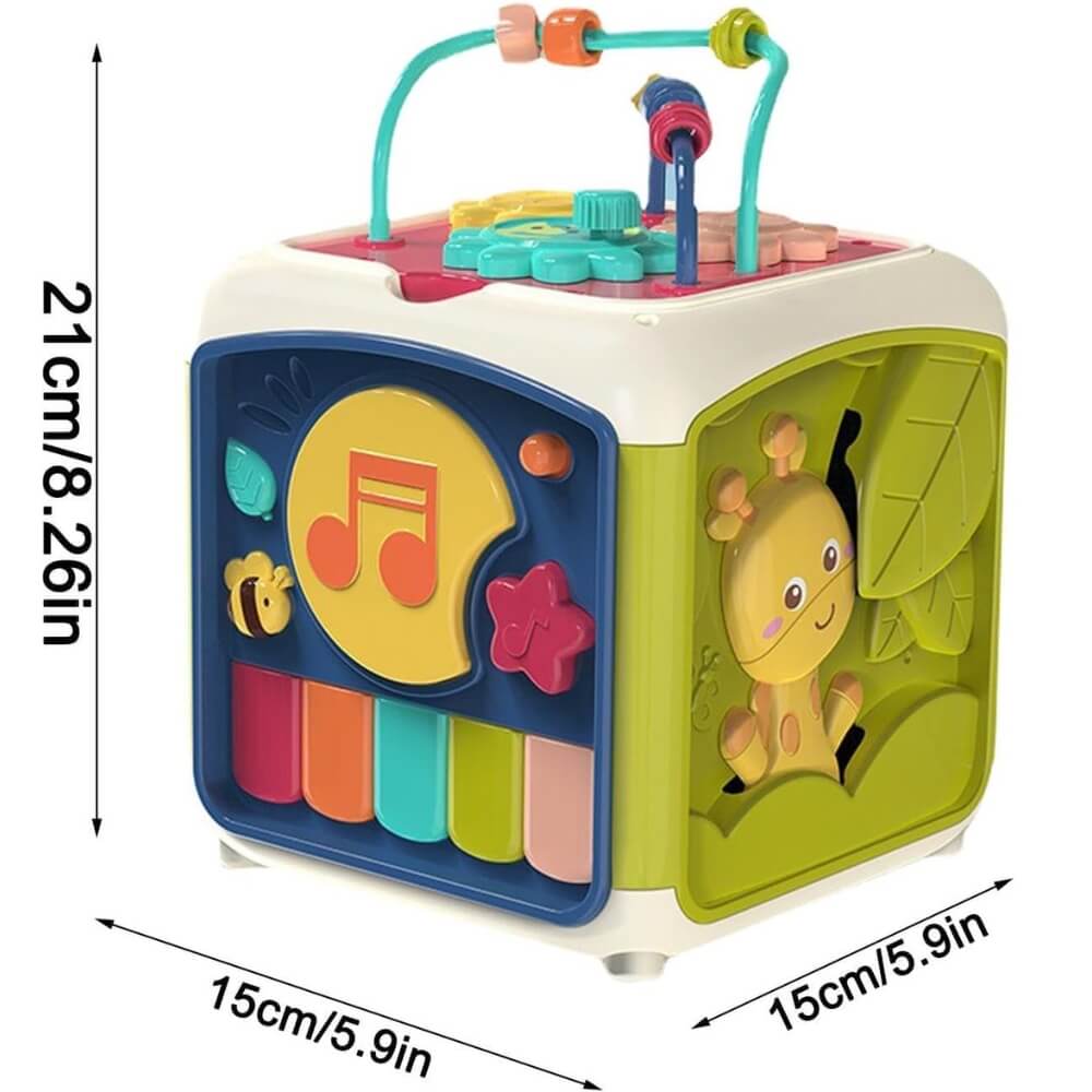 Baby Activity Cube has lots of fun things that will stimulate your baby’s senses. On each side, your little one will find a whole new and exciting activity to engage in.