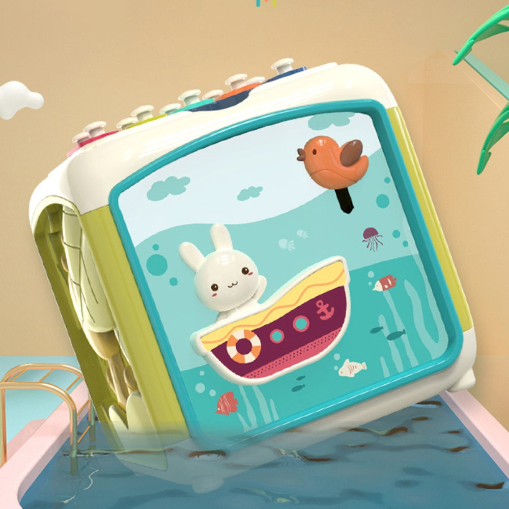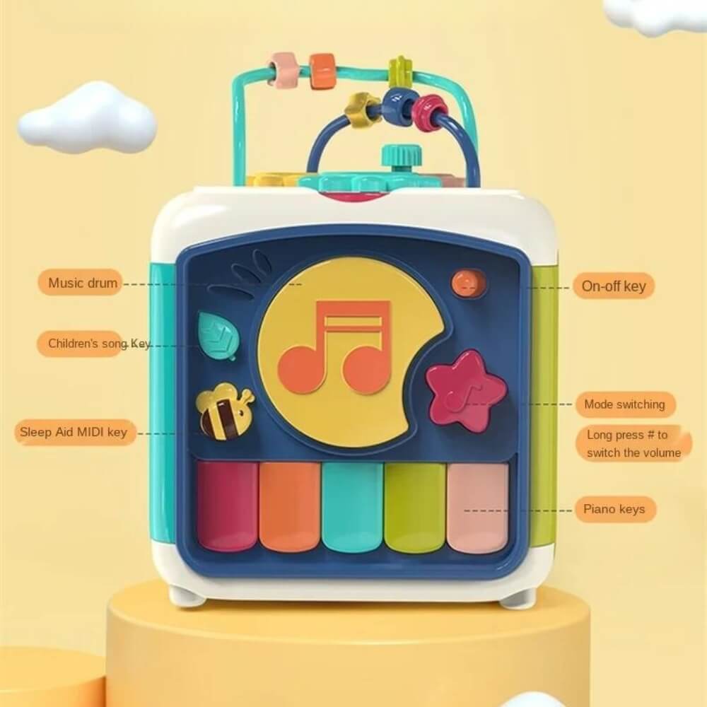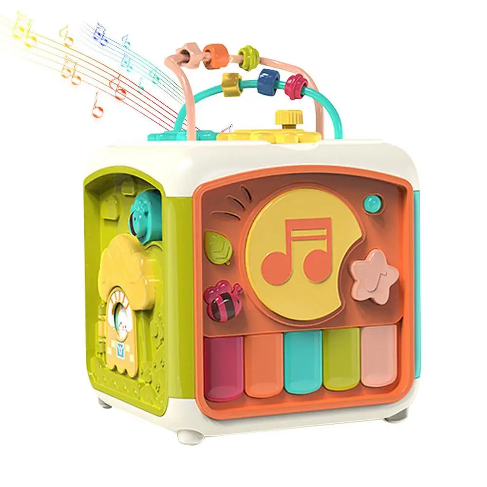 Baby Activity Cube has lots of fun things that will stimulate your baby’s senses. On each side, your little one will find a whole new and exciting activity to engage in.