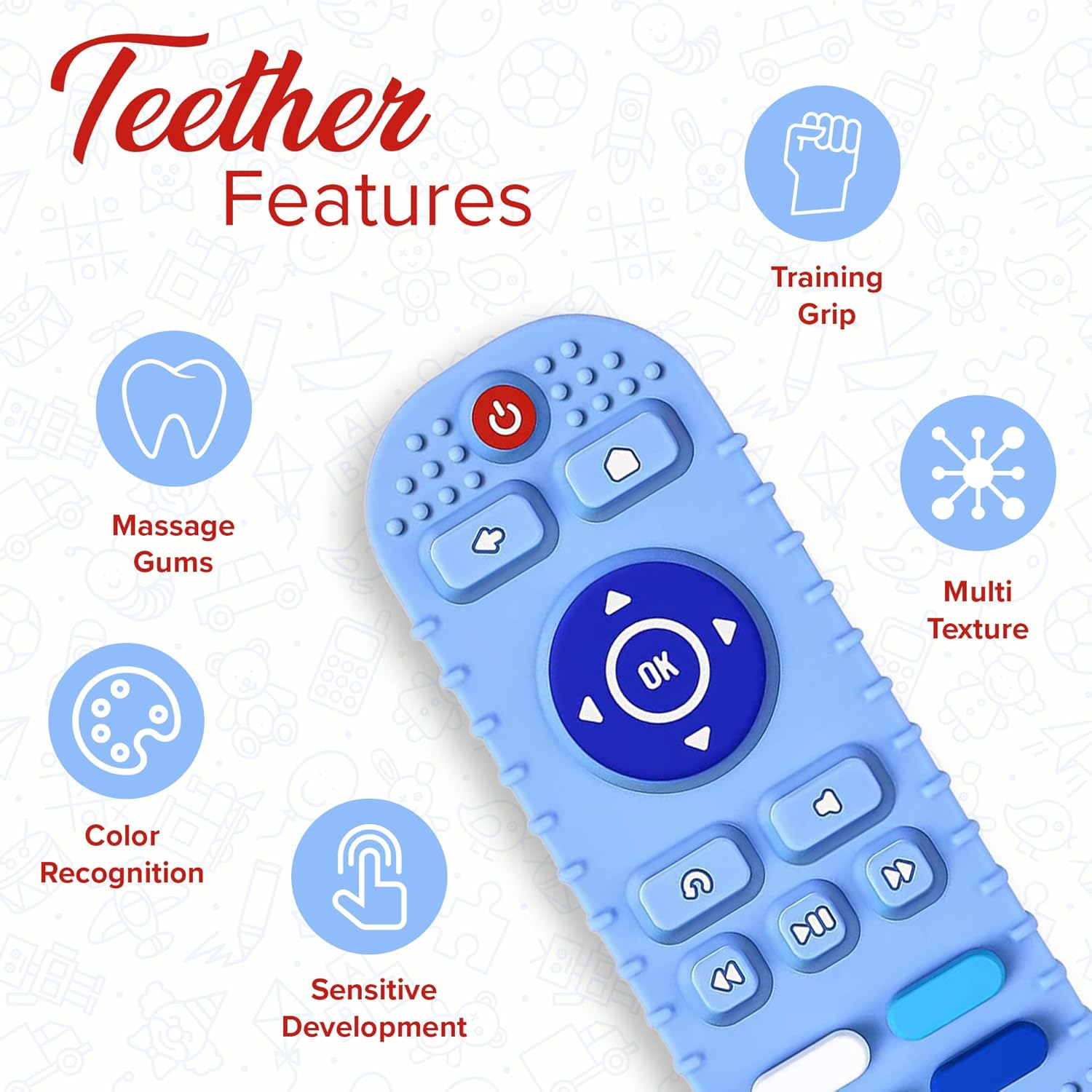 Now there’s one made just for them – safe, soft, and 100% chew-approved. The Baby ChewMote looks just like the real thing but is made of food-grade silicone, so your little one can satisfy their curiosity (and sore gums) without a worry.