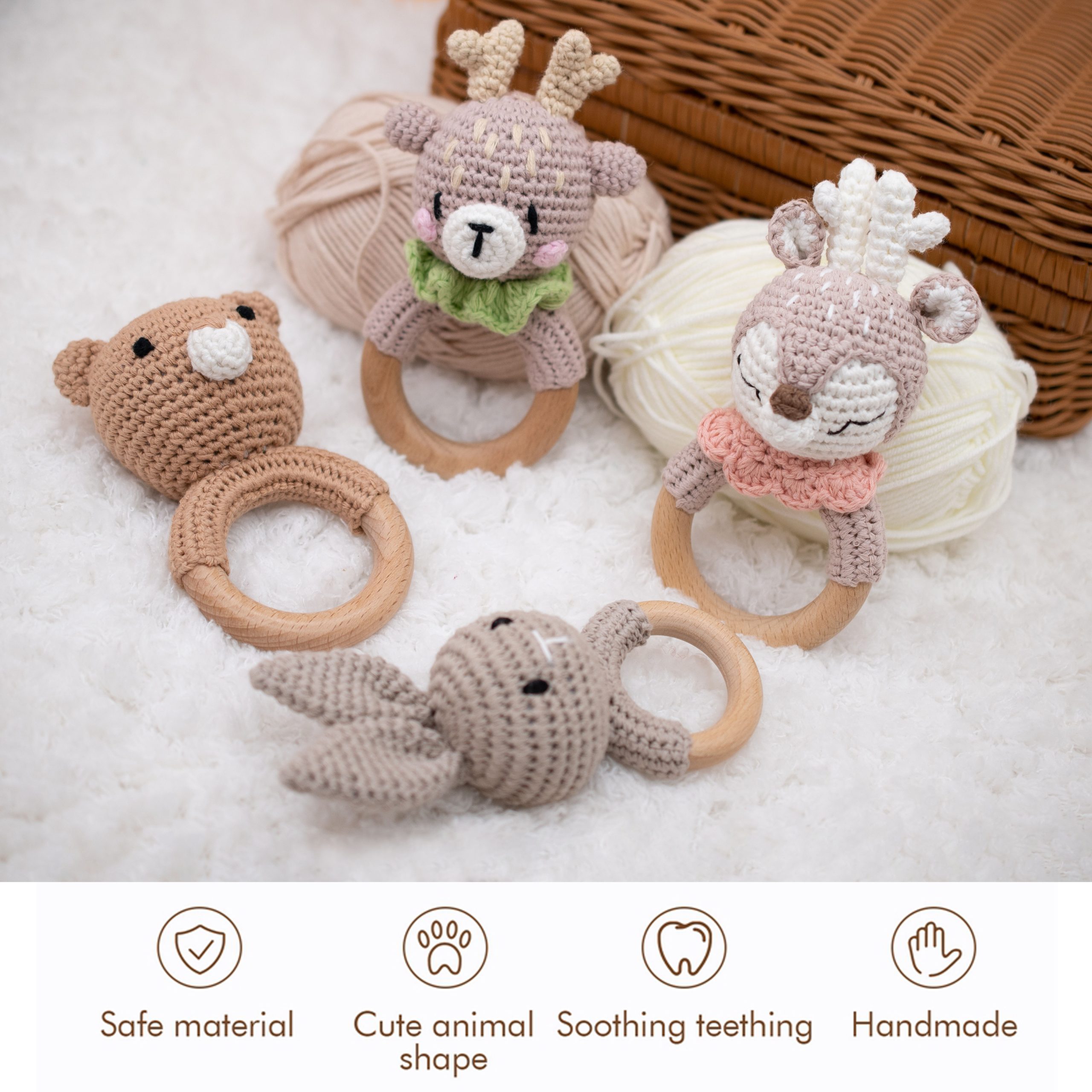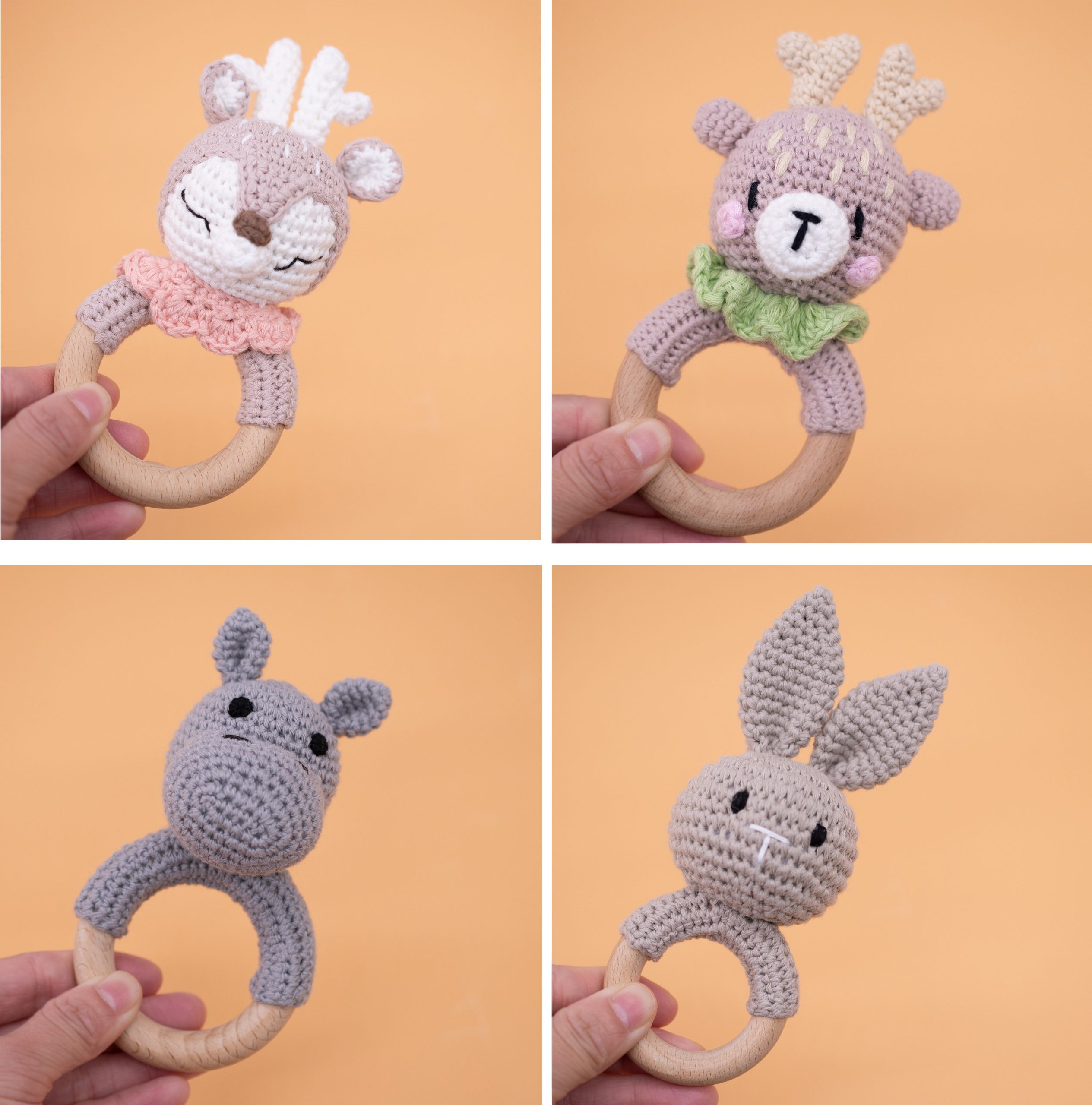 - Crochet animal rattles: The baby can chew, put in the crochet tune, will not bite. The animal rattles are colorful and durable to attract children’s attention.