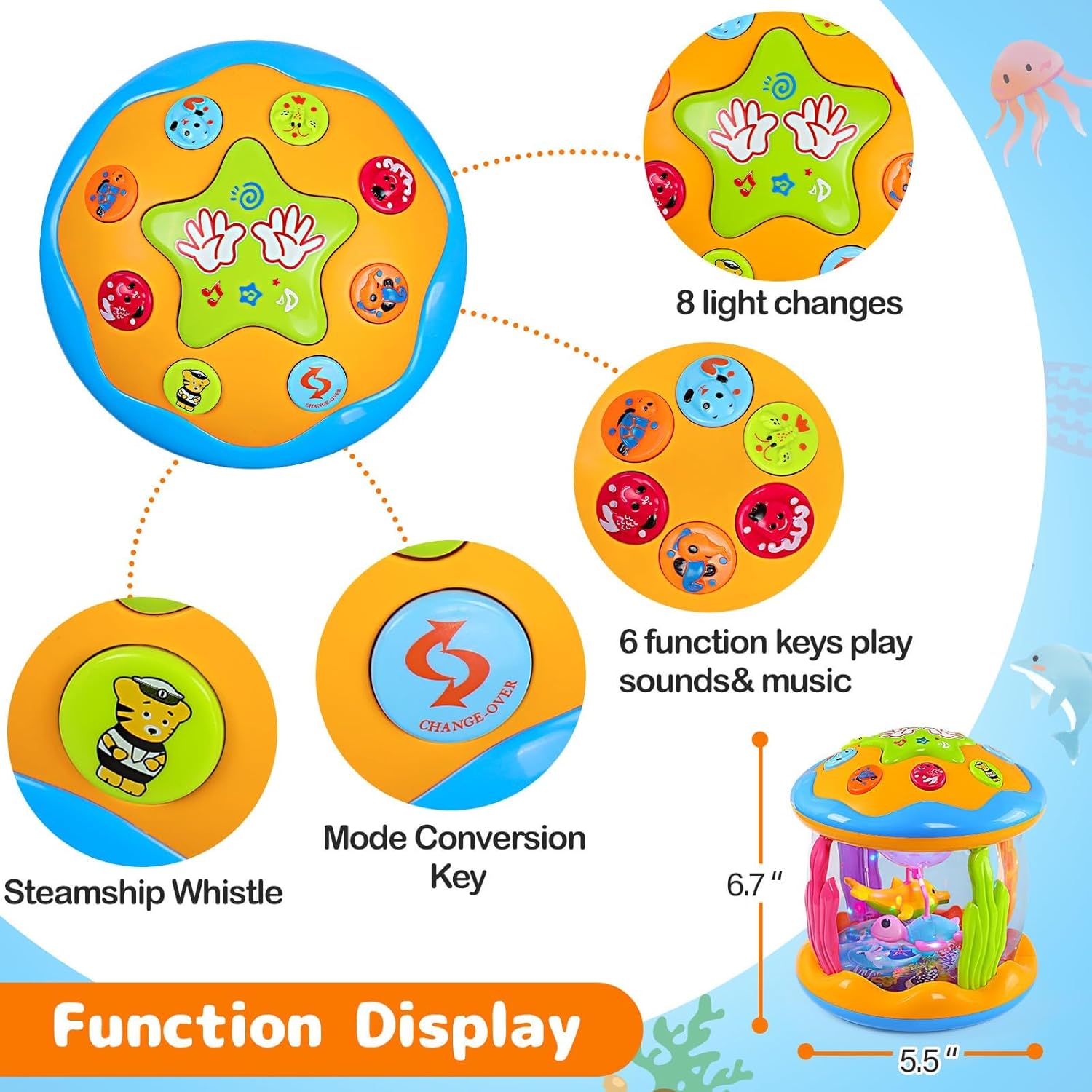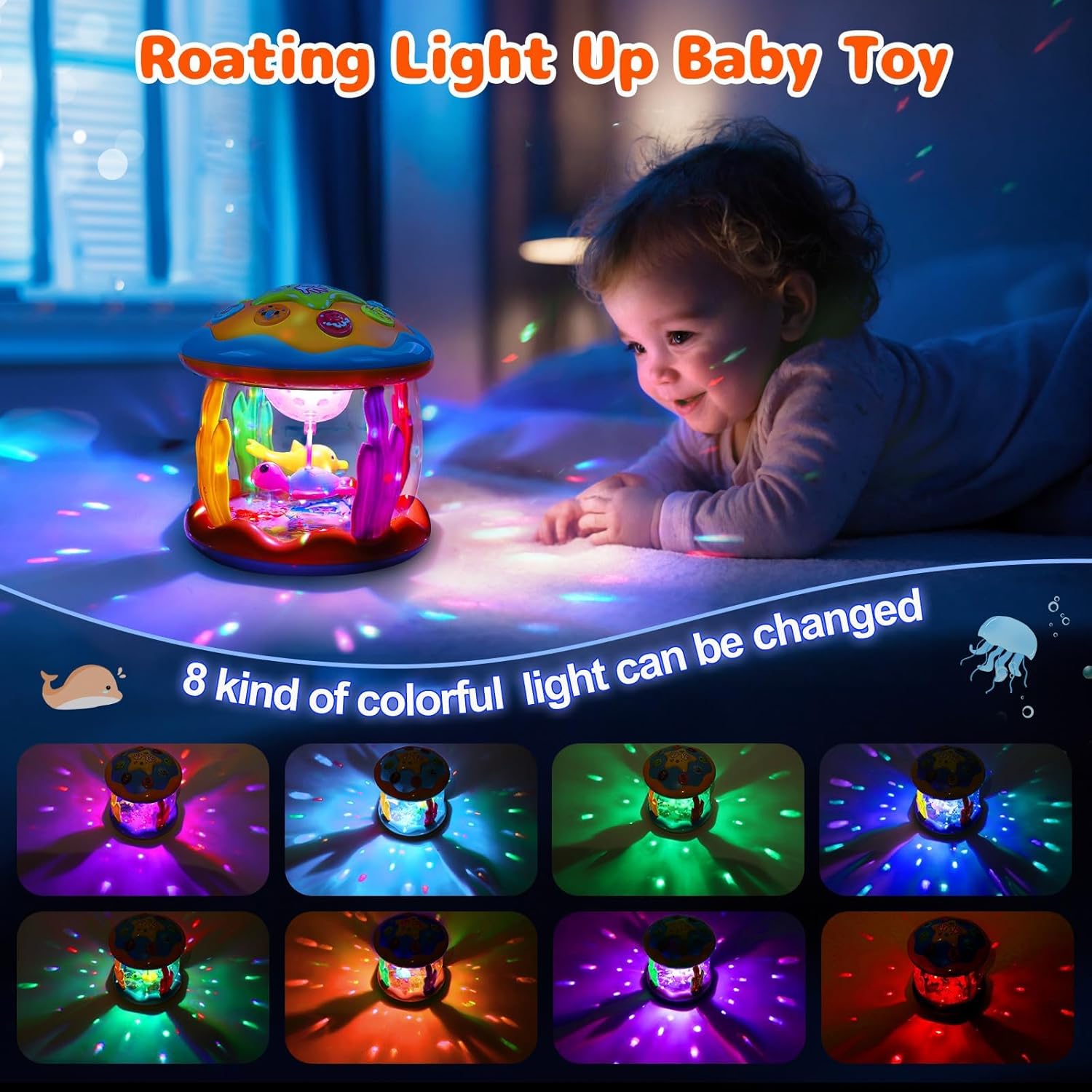 🐬 Encourages sensory development – Lights, music & motion engage babies.