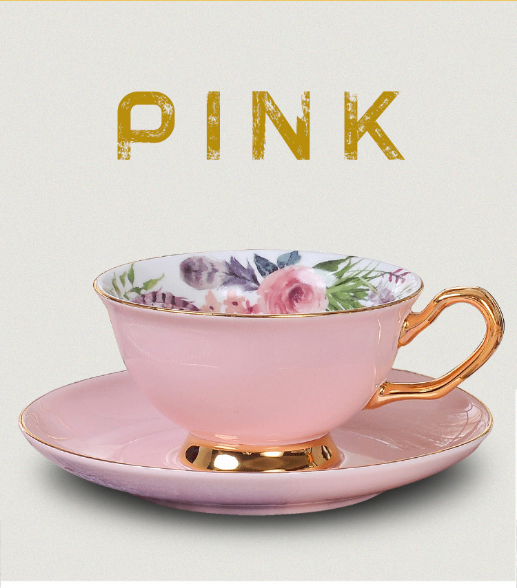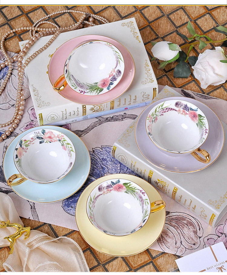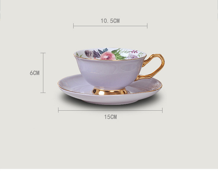 Beautiful Flower with Exquisite Gold Rim Ceramic Tea Cups & Saucers Set Kitchen Accessories