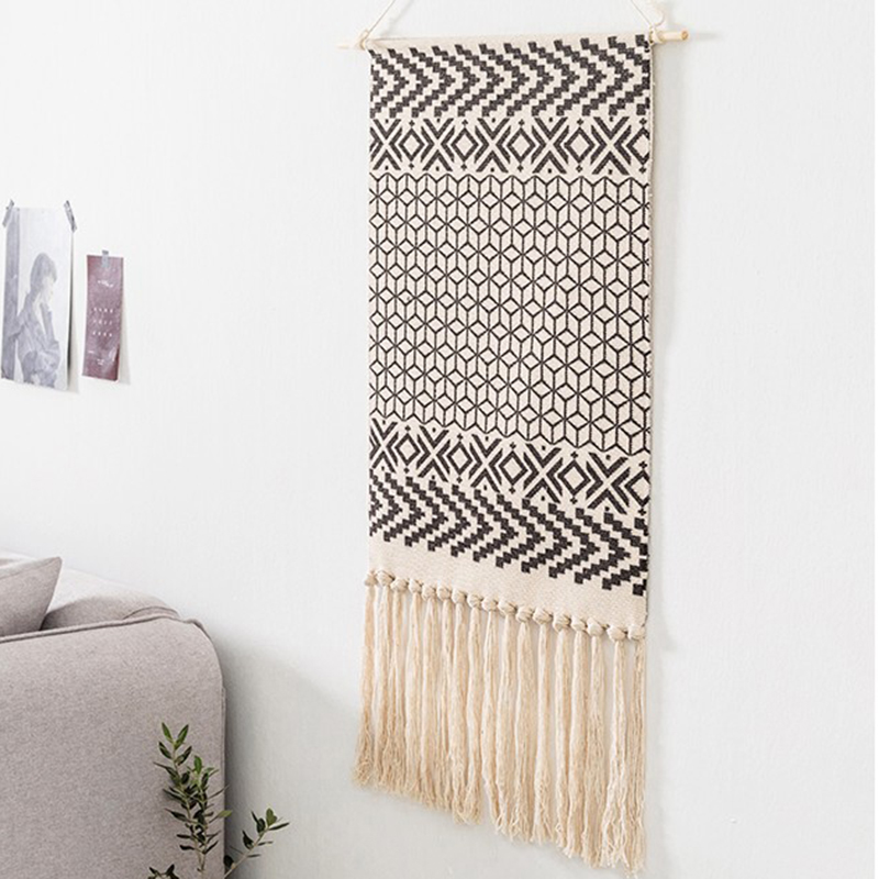 Bohemian Tapestry Macrame Wall Hangings Home Decor Cotton Linen Tassel Handmade Woven Geometric Canvas Art Background Tapestries