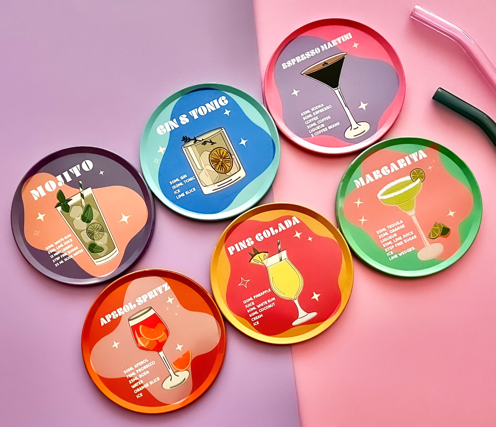 SPECIFICATIONS: This pack includes 6 tin corked-back coasters. The coasters have a diameter of 9 cm and are perfect to use under your mug, teacup, glasses to help prevent scratches or rings from liquids. Choose our thick, durable and long-lasting coasters that will not be damaged even after repeated use.