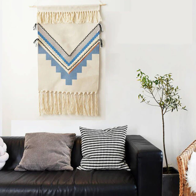 Boho home macrame wall hanging tapestry decor cotton tassel handmade woven geometric canvas art background cloth tapestry