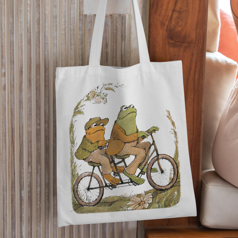 - Cartoon Frog Love Canvas Tote Bag