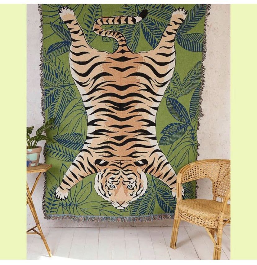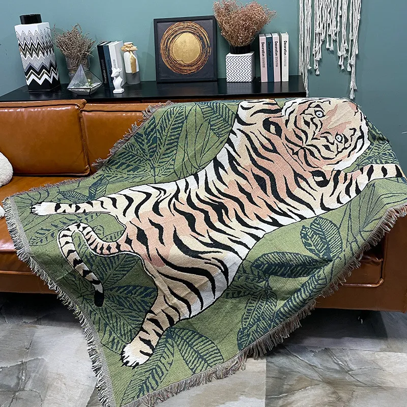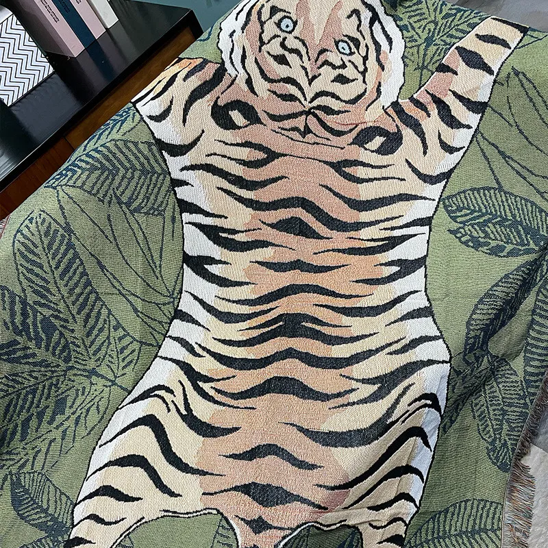 Cartoon Leaf Tiger Knitted Tassel Throw Blanket Sofa Cover Home Decoration
