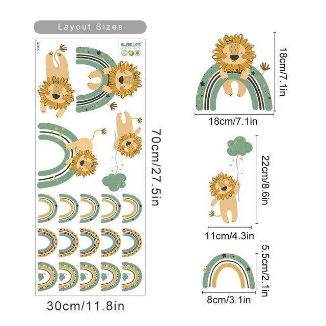 Cartoon Lion Green Rainbow Nursery Wall Stickers Removable DIY Peel and Stick Wall Decals Kids Room Interior Home Decoration