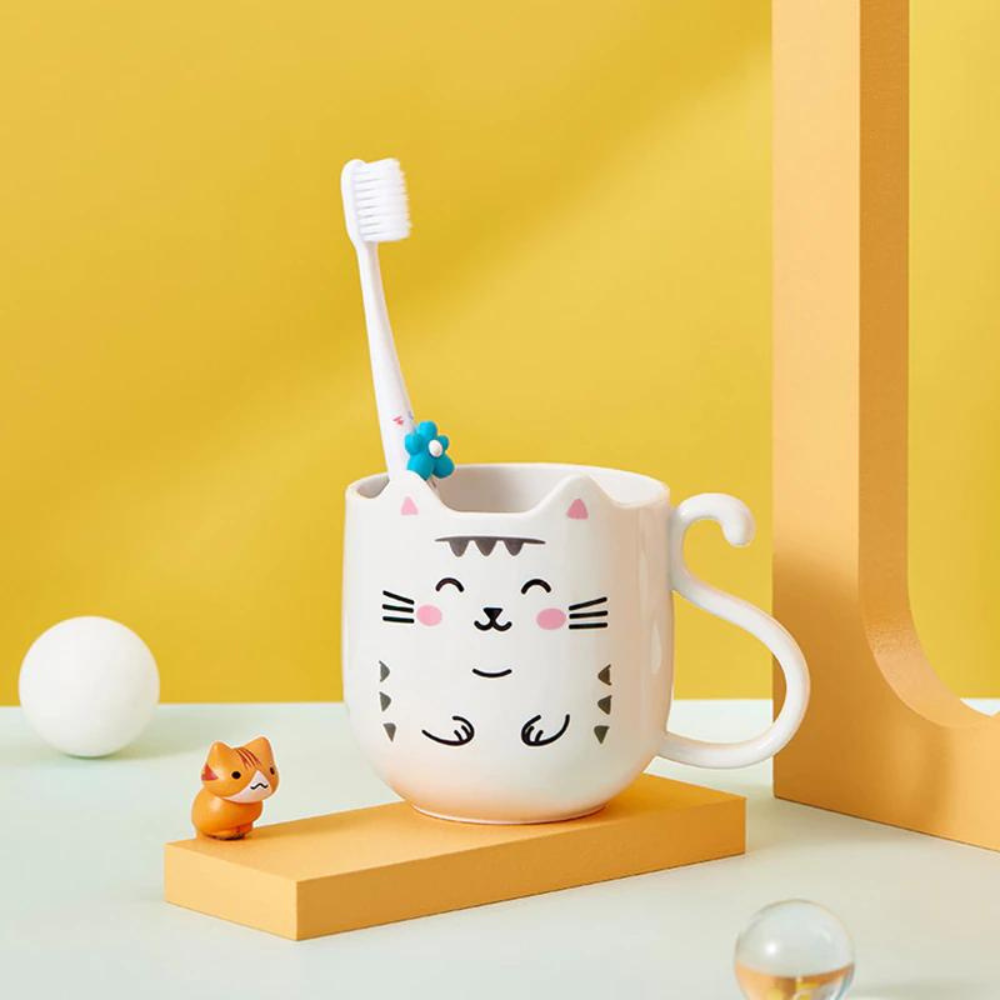 Cartoon Mouthwash Cup Cute Cat Shaped, White