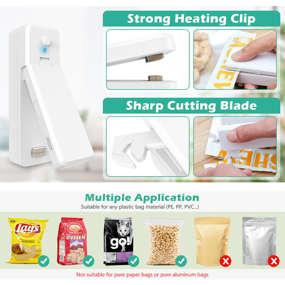 Two-in-one heat sealer: This mini bag sealer is very suitable for packaging and preventing food and snacks from becoming damp.