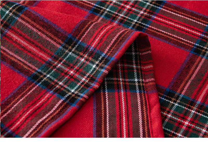 The tablecloth features a festive design with a simple grid pattern in traditional Christmas colors of red and green. This design element adds a joyful and celebratory atmosphere to your home during the holiday season.