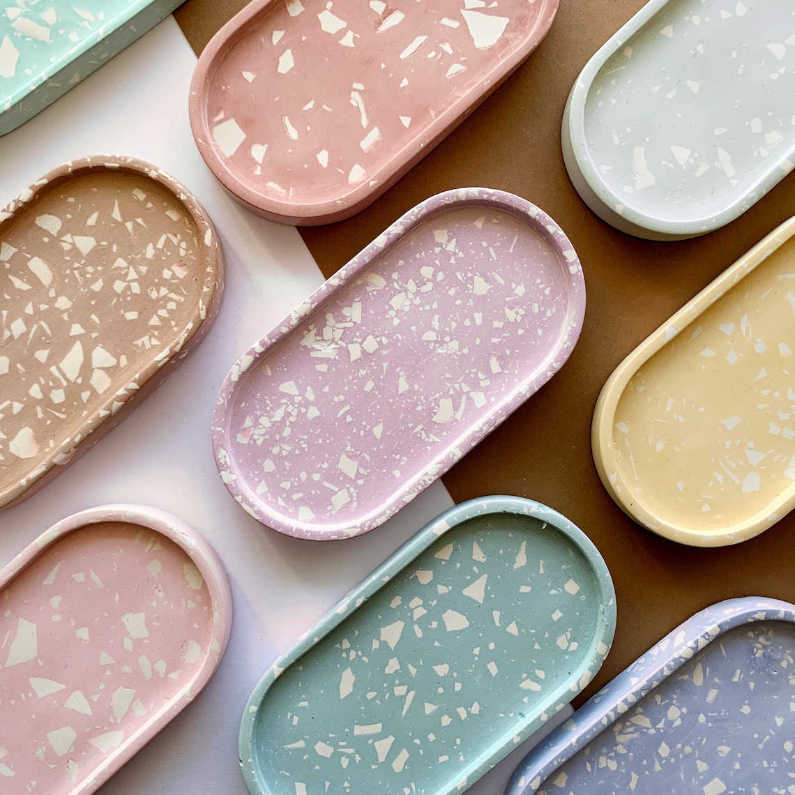 Who says cleaning up has to be boring? These terrazzo trinket dishes ensure that all your little treasures stay neatly together. Each bowl is carefully designed, making it a truly unique and beautiful accessory for your interior.