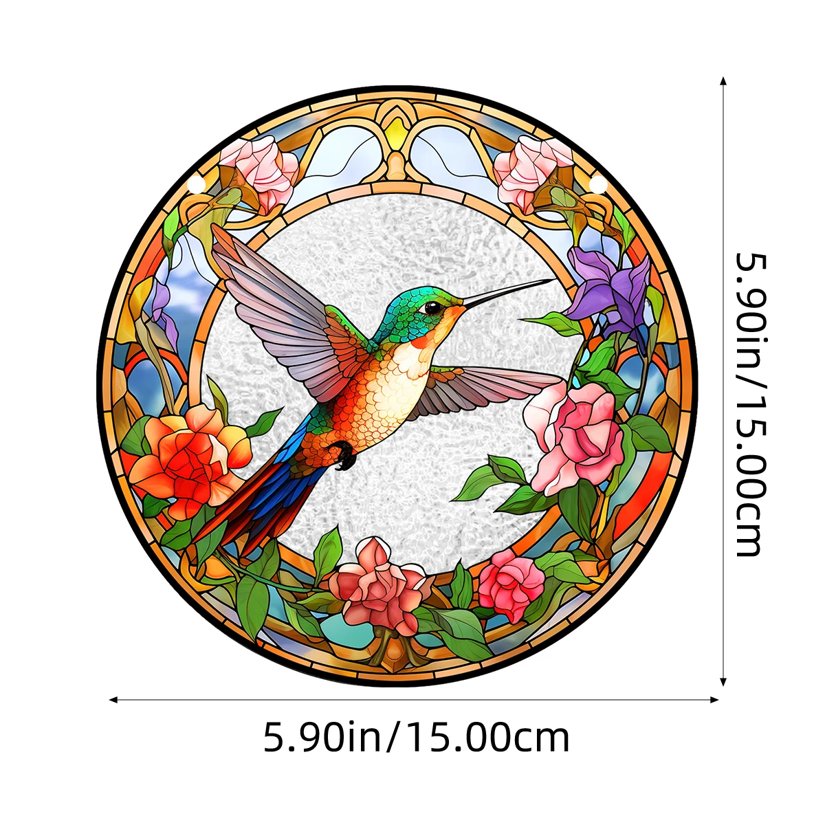 Colorful Glass Pattern Hummingbird Stained Suncatchers with Chains
