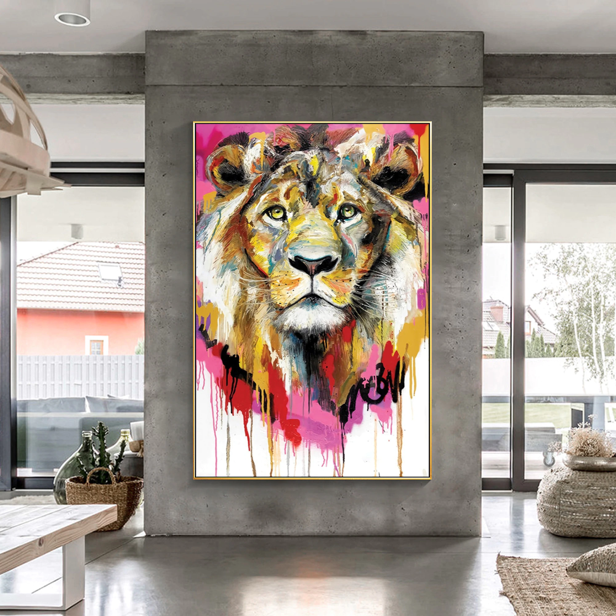- Colorful Lion Animal Acrylic Painting On Canvas Large Wall Art Modern Wall Art Contemporary Home Wall Art Living Room Decor