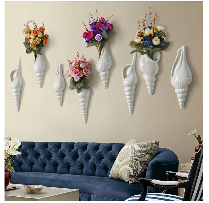 Conch style hanging planter pots with high gloss finish.Add flowers if you wish, but this vase can also stand alone as a decorative piece.
