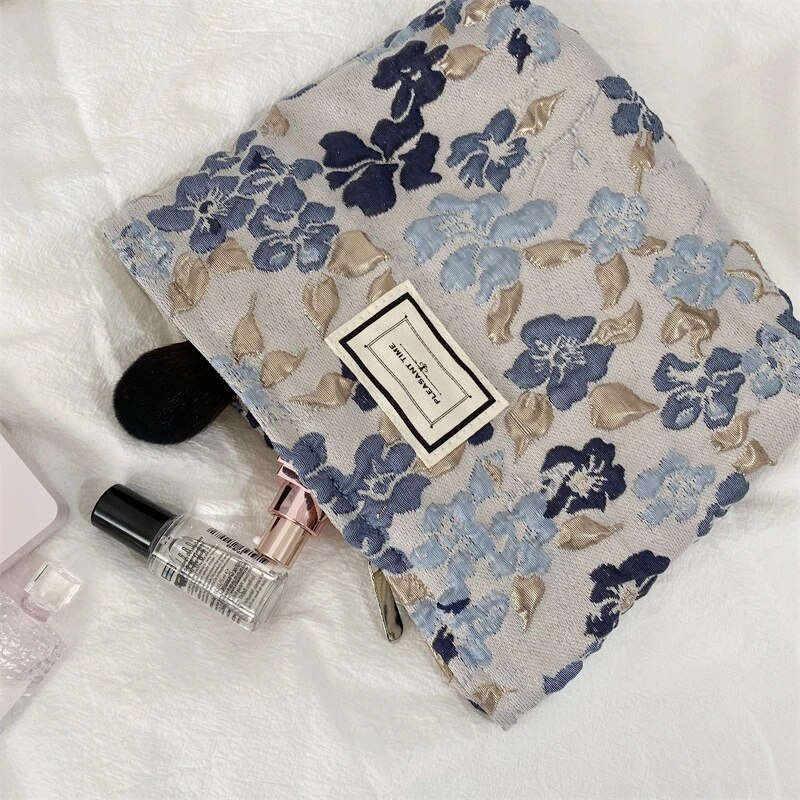 Cosmetic Bag French Relief Flowers Print Makeup Storage Bag Purses Women Large Capacity Travel Toiletry Bag Canvas Beauty Case