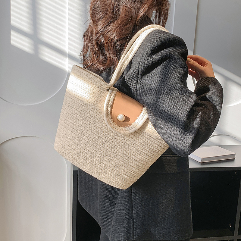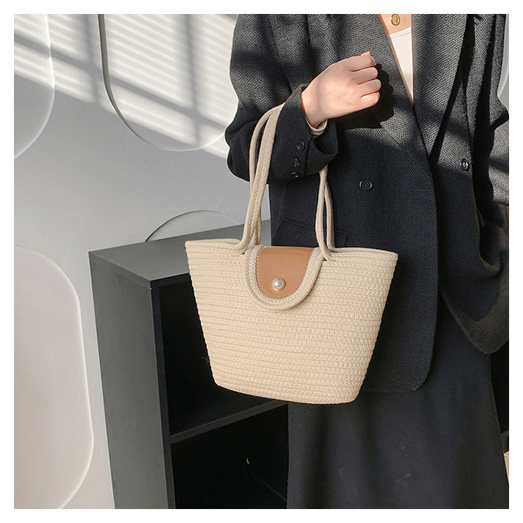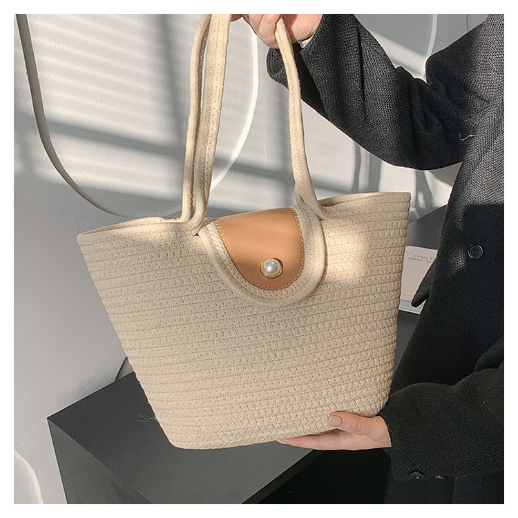 The Cotton Rope One Shoulder Tote Bag is a stylish and versatile accessory that combines functionality with a trendy design. Made from high-quality cotton rope, this bag features a single shoulder strap for easy carrying. With its spacious interior, it offers ample room to hold your essentials. The one-shoulder design adds a modern twist to the classic tote bag, making it a fashionable choice for any occasion. Whether you’re heading to the beach or running errands in the city, this tote bag is the perfect companion for your everyday needs.