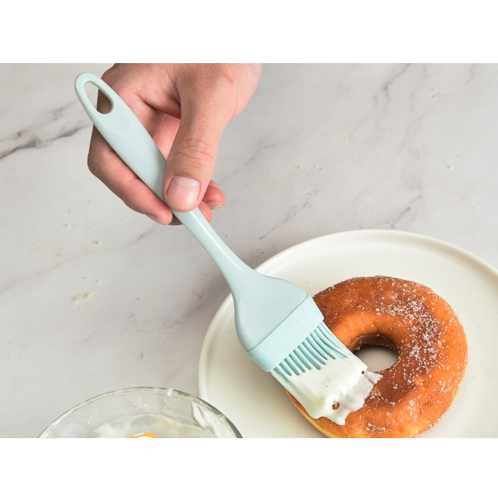 The rounded edge of the cream spatula oil brush set does not damage the pot and kitchen utensils.