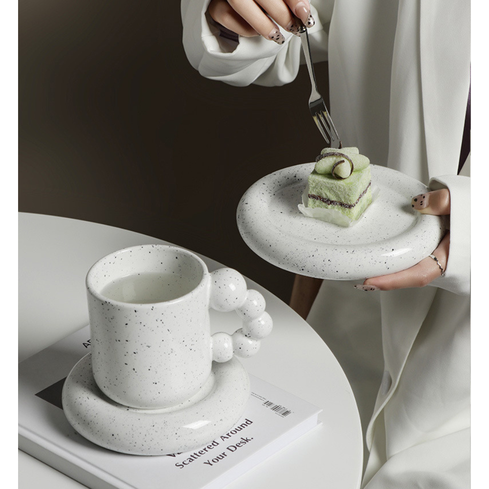 Creative Handmade Rotating Ball Handle Mug With Round Plate Ceramic Coffee Tea Cup Saucer Nordic Kitchen Home Decor Unique Gifts