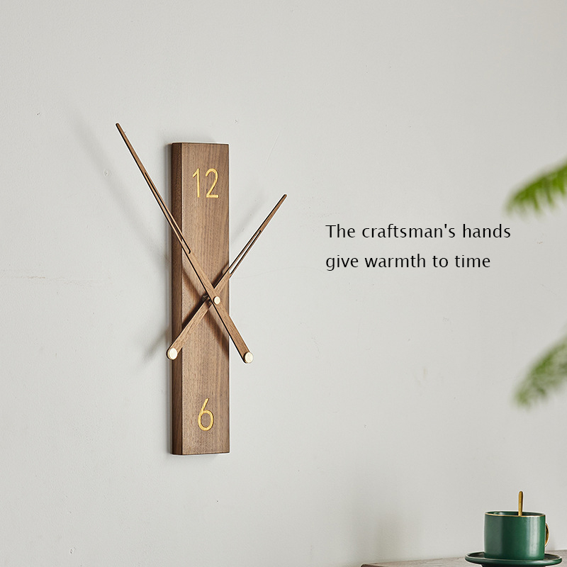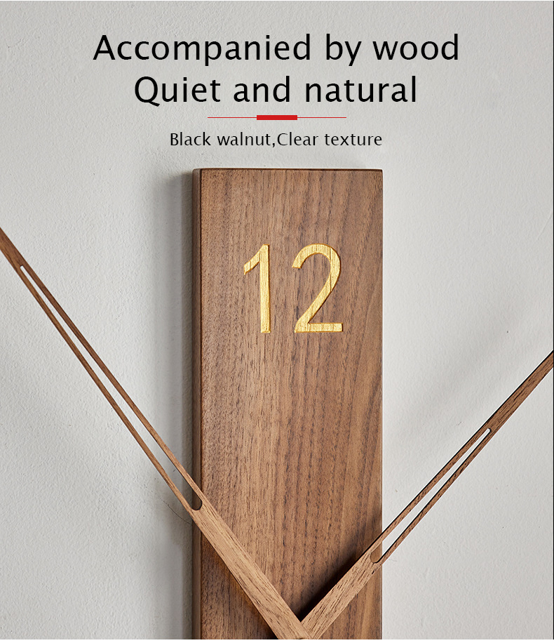 Creative Walnut Pointer Wall Clocks Silent Movement Brief Style Living Room Decoration
