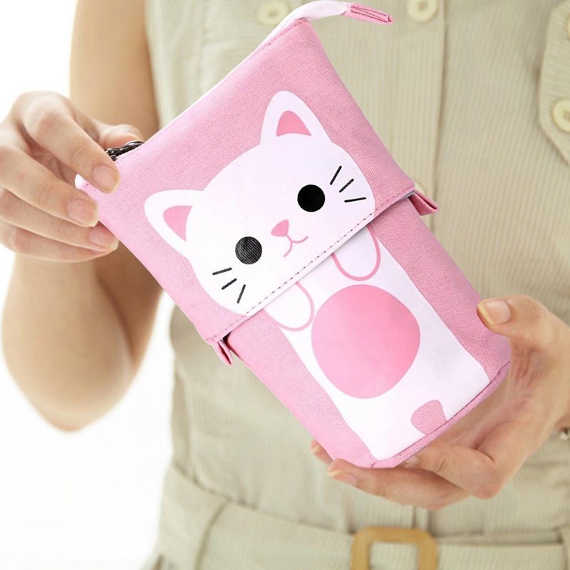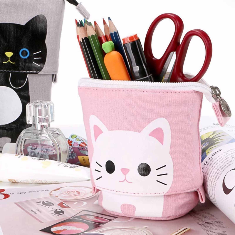 - Open the pen case, pull it down, you will get a standing desk pen holder for easy access of pens. And when you finish your work, pull pen holder up, can take away all the stationery with you.