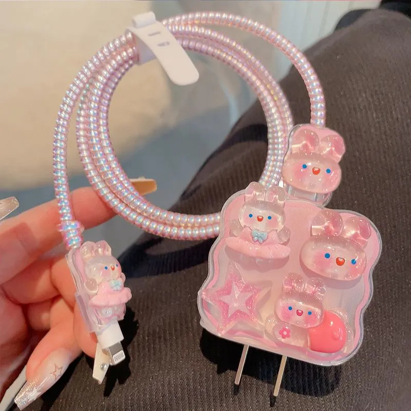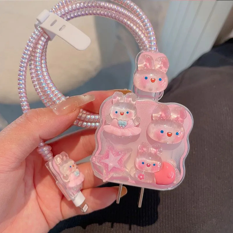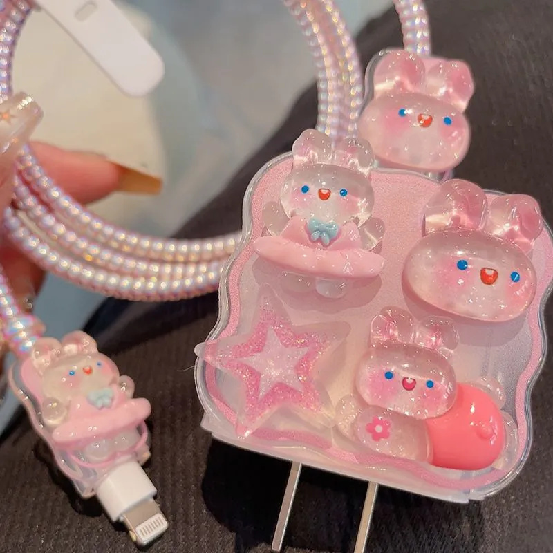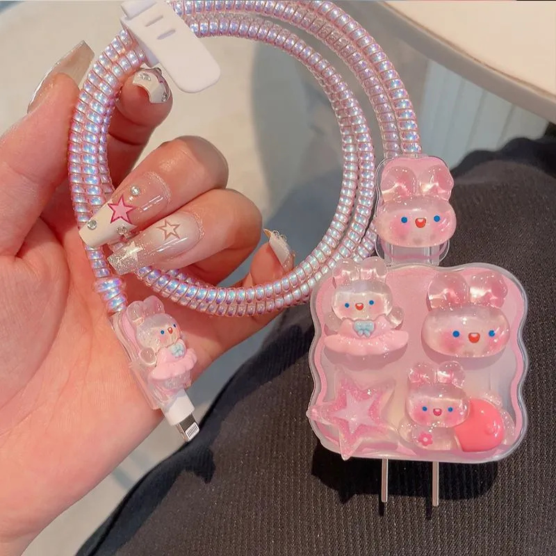 The cute star rabbit design adds a touch of playfulness and whimsy to your charging setup, making it stand out from ordinary charger cases. With the gradient color effect, the case offers a dynamic and eye-catching appearance.