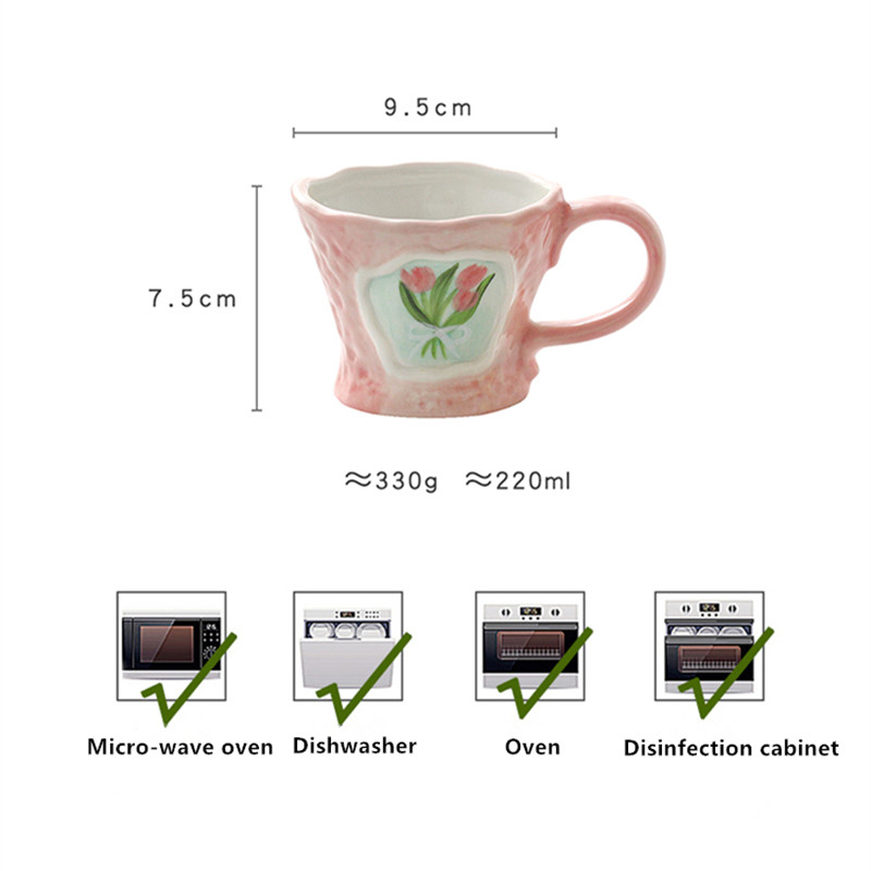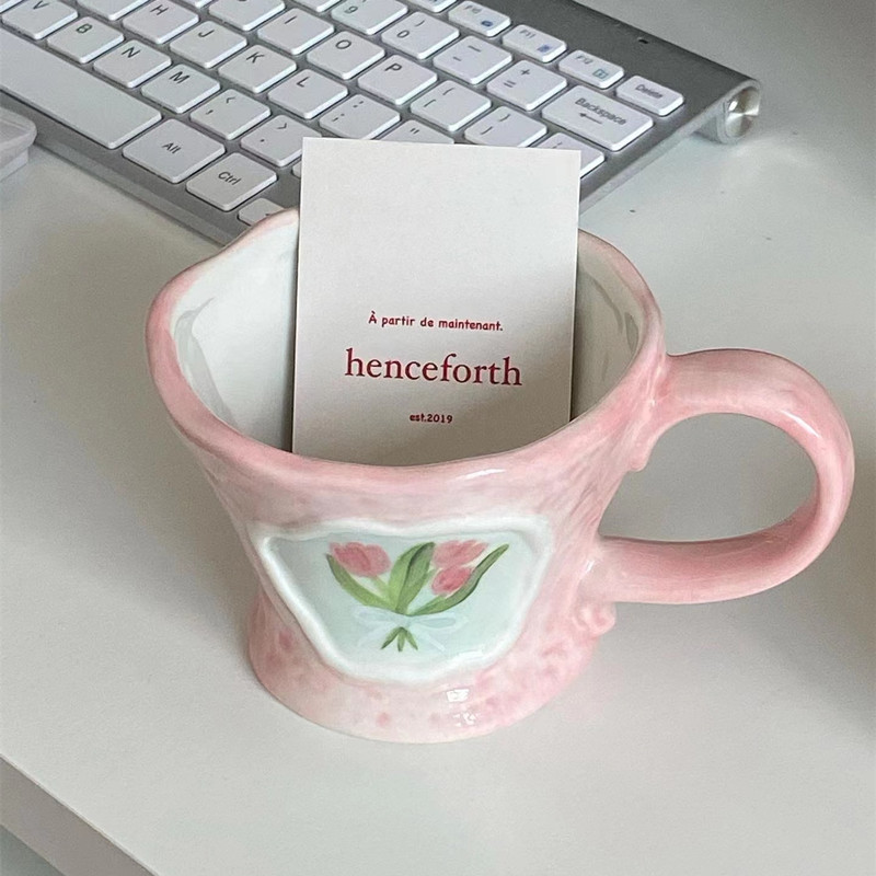 CuteLife Nordic Flower Ceramic Coffee Mug, Pink