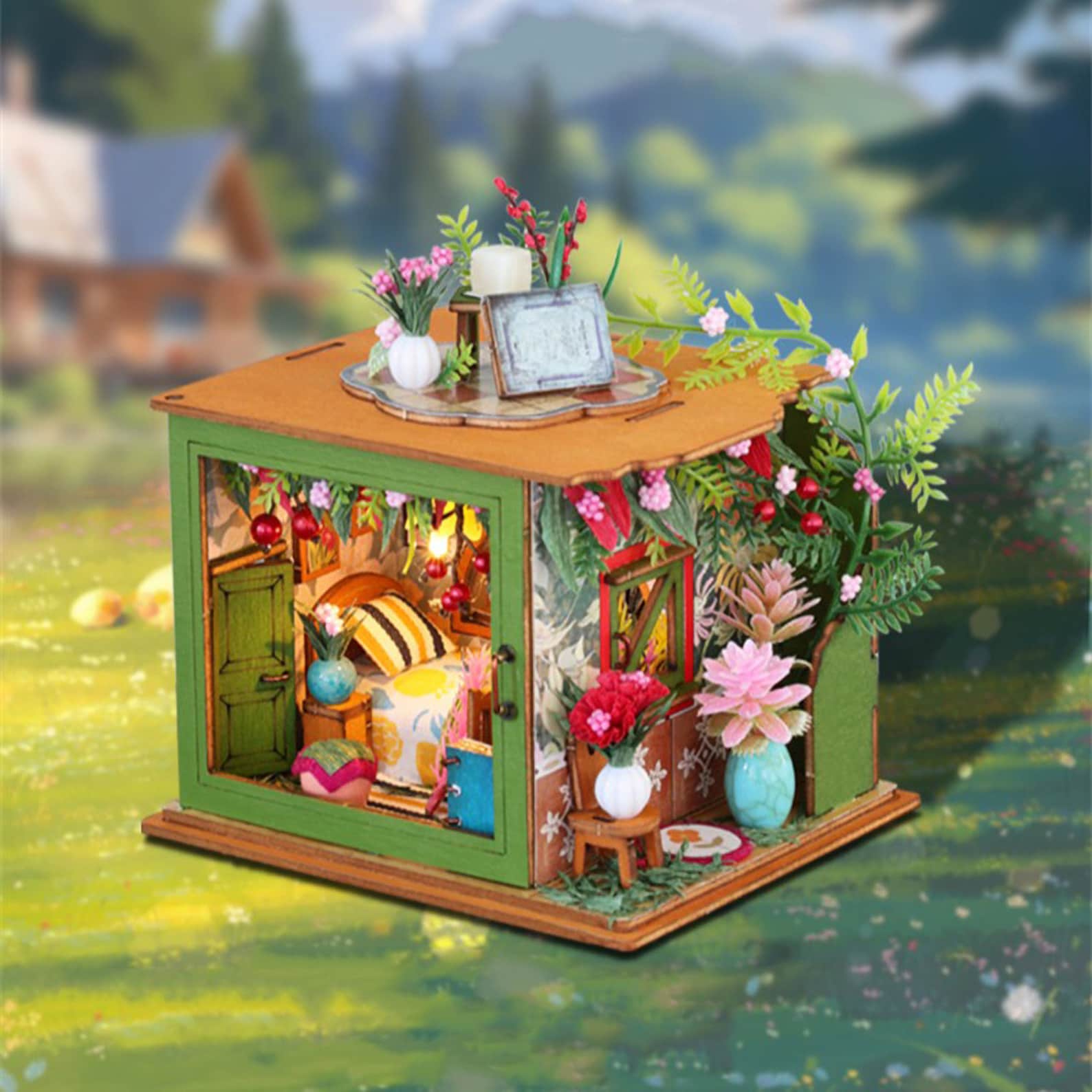 — Name: DIY Mini Flower Bedroom Miniature Doll House Kit