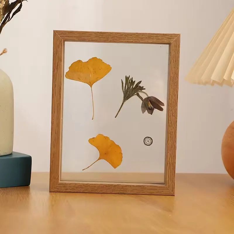 Easy to use: There is a card slot on the top of the frame, just take out the middle plexiglass, and then clamp the photos, embossing, dry leaves or plant specimens in it. After receiving the goods, tear off the inner film on both sides of the frame glass and then you can use it.