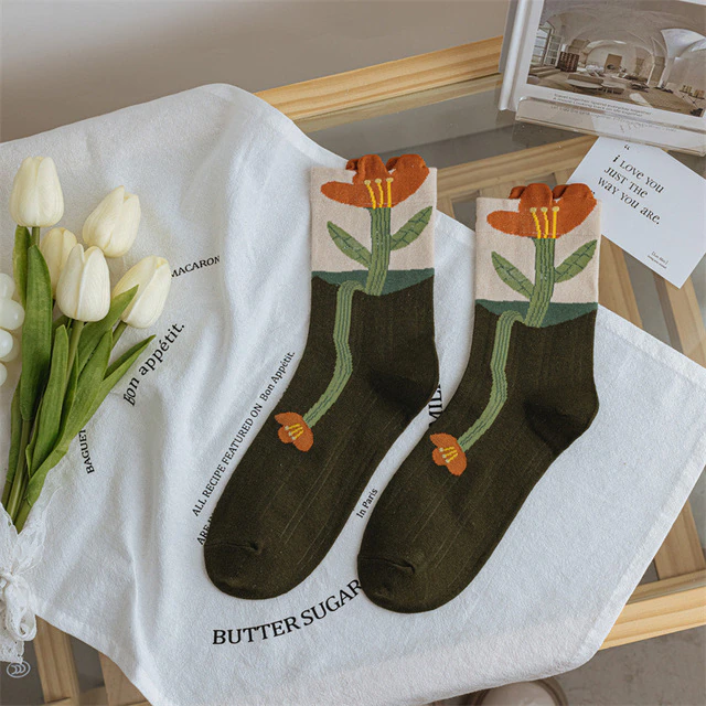 Flower Cotton Long Women Socks, Japanese Style