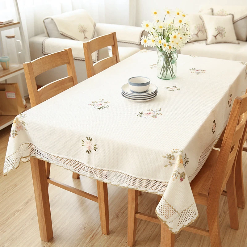 Europe Flowers Tablecloth White Hollow Lace Cotton Linen Dustproof Table cloth Wedding Banquet TV Cabinet Cover Cloth
