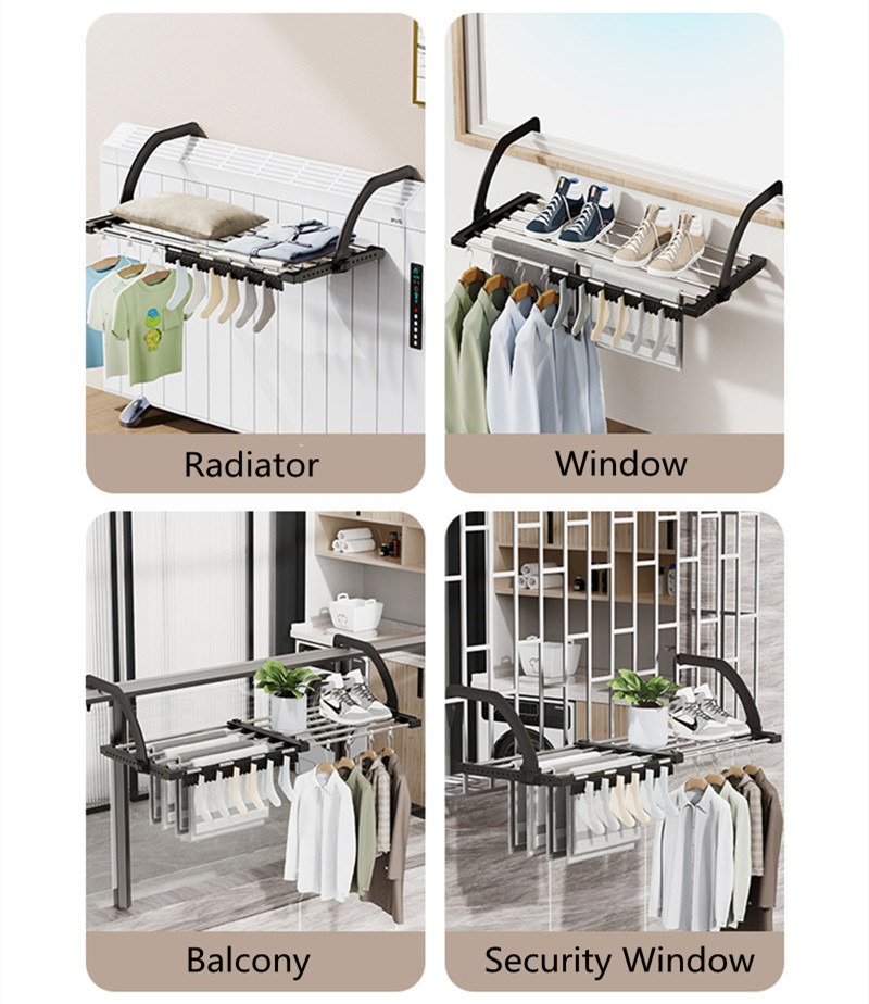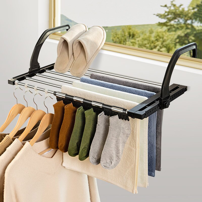 Foldable Balcony Clothes Drying Rack With Sock Clips